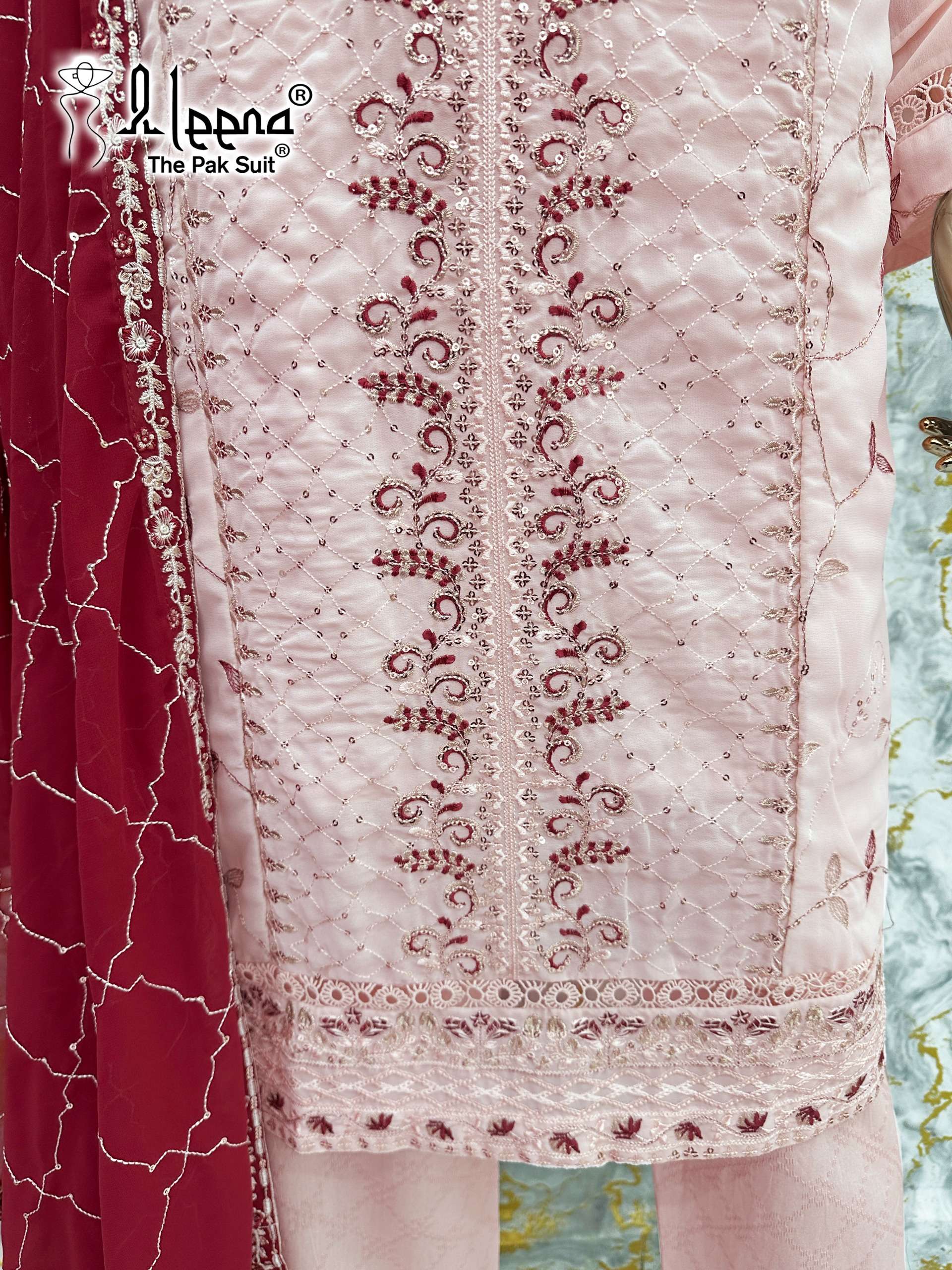 ➖➖➖➖➖➖➖➖ ❤️ Description❤️ 〰〰〰〰〰〰〰 Designer Tunic Embellished with beautiful embroidery WITH SEQUINS WORK, HANDWORK GORGETTE TOP & sleeves embroidery sequence WITH LACES WORK ,paired with Classic jacquard self embossd pant & EMBROIDERIED WITH SEQUENCE GORGETTE WORK DUPATTA.