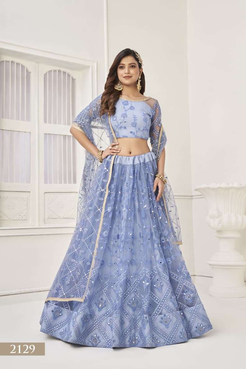 2129 Neon Blue Butterfly Net Lehenga Choli collection manufacturers surat