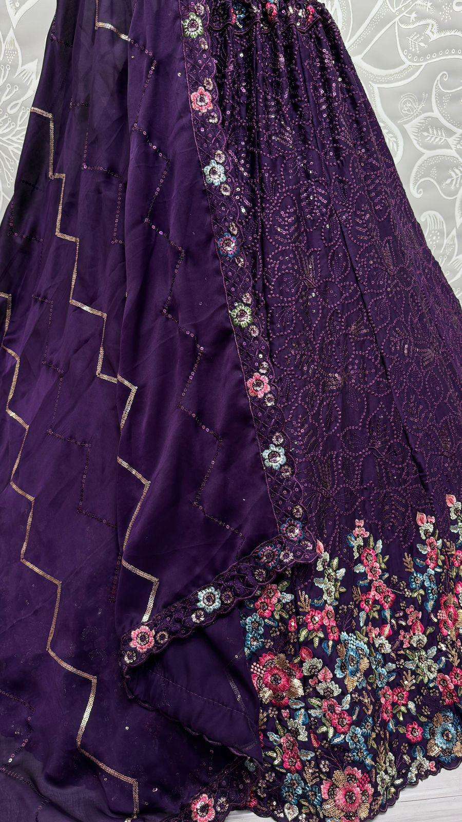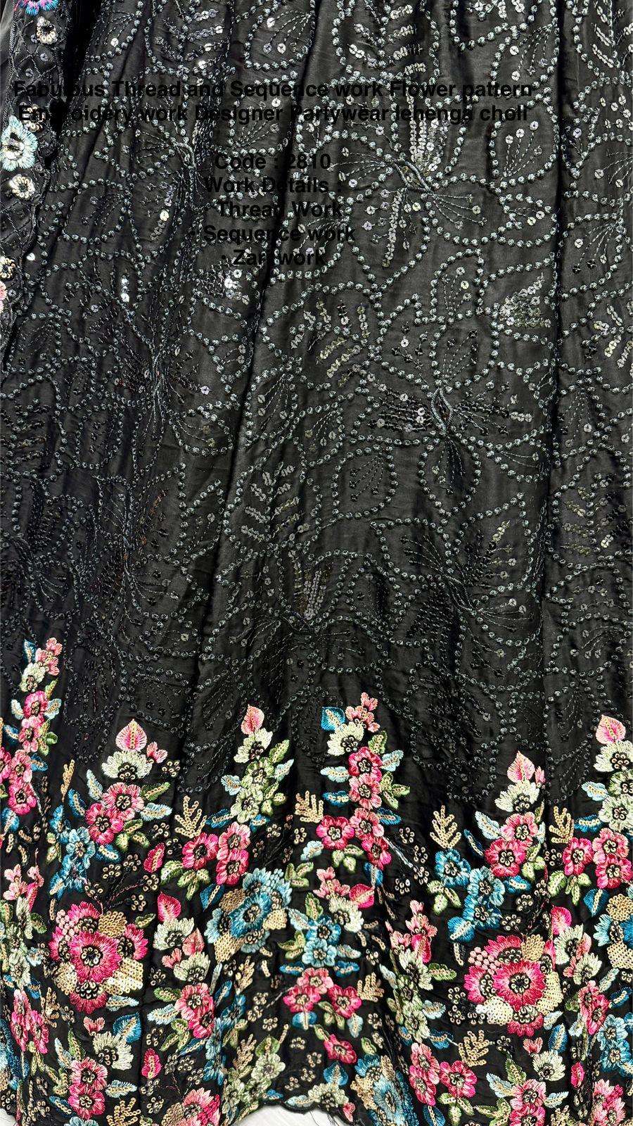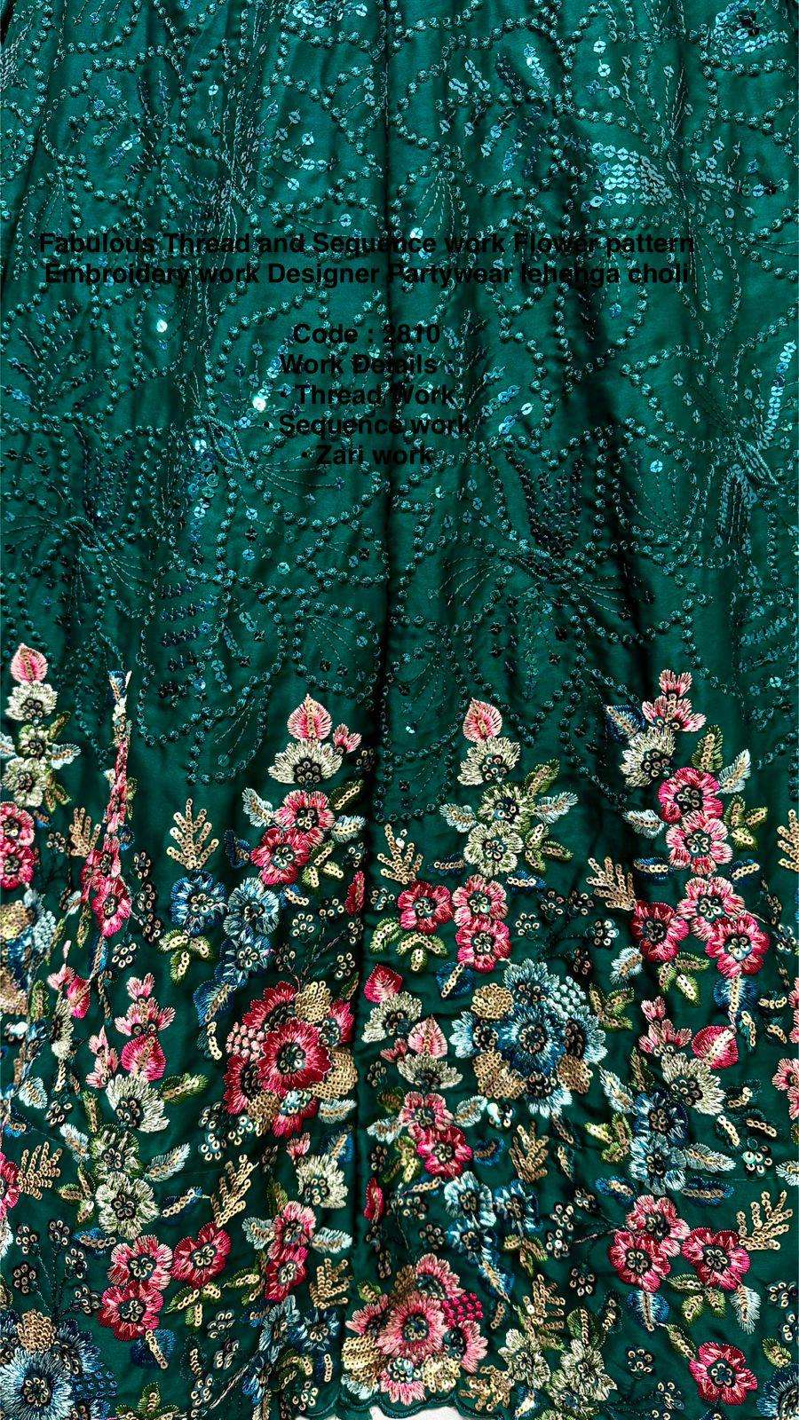 Fabulous Thread and Sequence work Flower pattern Embroidery work Designer Partywear lehenga choli