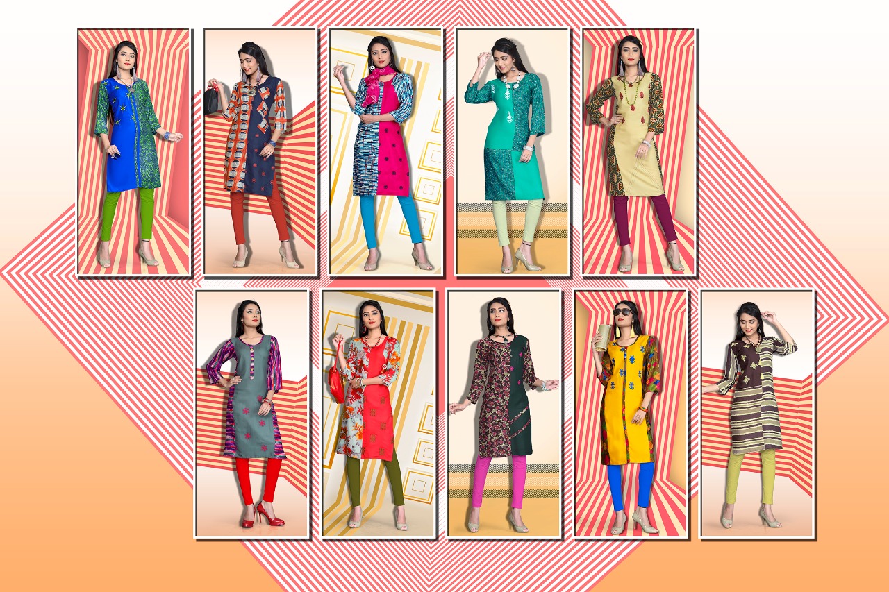 Buy Online 5 Star By Violet 201 Series Reyon Kurti Catlog Wholesale Supplier And Trader Surat 10 Pcs of Full Catalogue at Wholesale Price. Looking for 5 Star By Violet 201 Series Reyon Kurti Catlog Wholesale Supplier And Trader Surat Full Catalouge at Best Price? Buy Now 5 Star By Violet 201 Series Reyon Kurti Catlog Wholesale Supplier And Trader Surat at Wholesale Rate of Rs 2490 with Total 10 Pcs from authroized dealer and supplier of BRAND'S Brand. Cost of Each piece is just only Rs 249 which is very low and affordable price to resale the product in your retail store ,This is Surat based Wholesale Supplier & Dealer of BRAND'S Brand. Click on Brand name to Know more about BRAND'S Brand's products.Call or Whatsapp on 9898838984 for booking or enquiry
