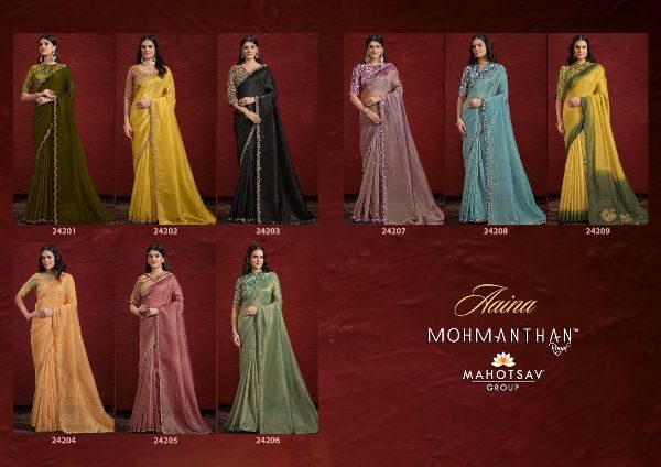 Buy Online Aaina Series 24201 To 24209 By Mahotsav 9 Pcs of Full Catalogue at Wholesale Price. Looking for Aaina Series 24201 To 24209 By Mahotsav Full Catalouge at Best Price? Buy Now Aaina Series 24201 To 24209 By Mahotsav at Wholesale Rate of Rs 0 with Total 9 Pcs from authroized dealer and supplier of Mahotsav Saree Brand. Cost of Each piece is just only Rs 0 which is very low and affordable price to resale the product in your retail store ,This is Surat based Wholesale Supplier & Dealer of Mahotsav Saree Brand. Click on Brand name to Know more about Mahotsav Saree Brand's products.Call or Whatsapp on 9898838984 for booking or enquiry