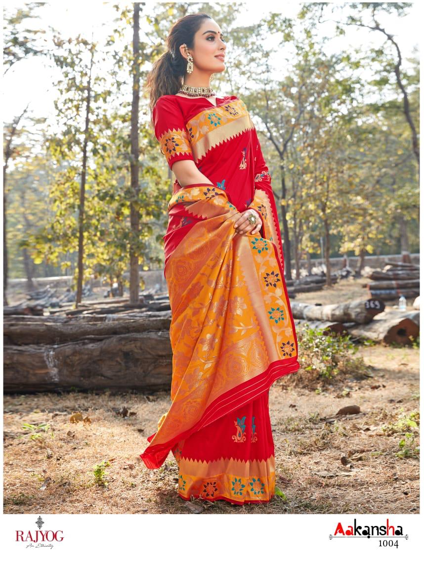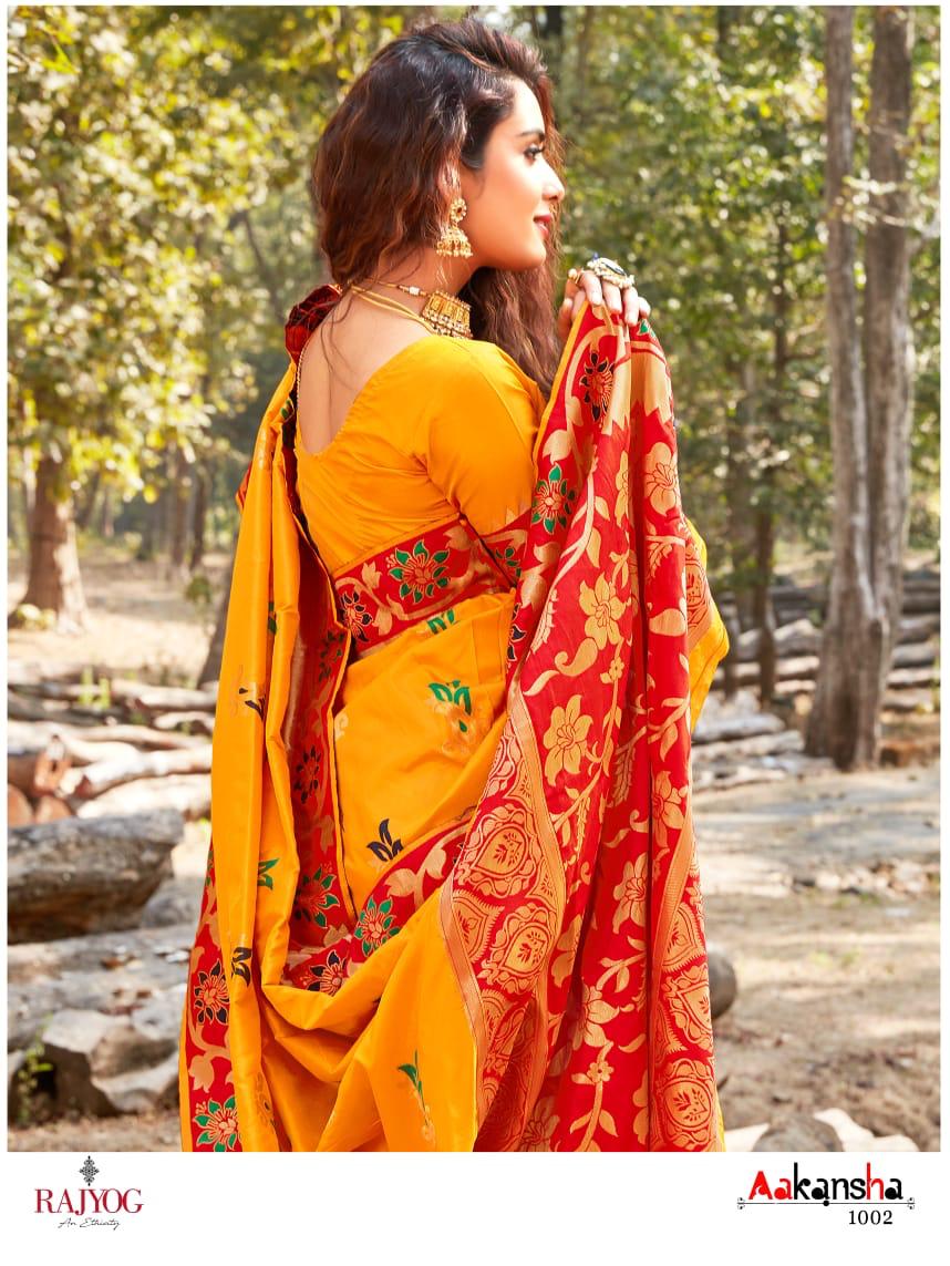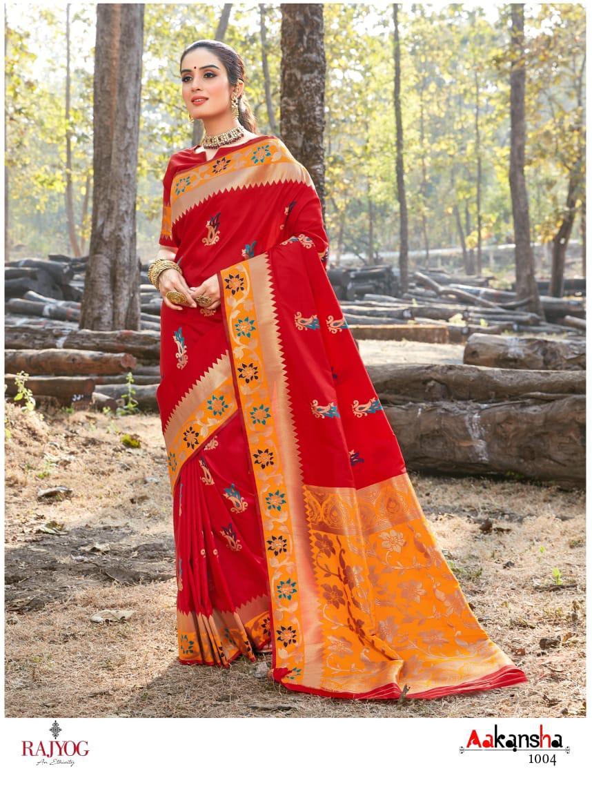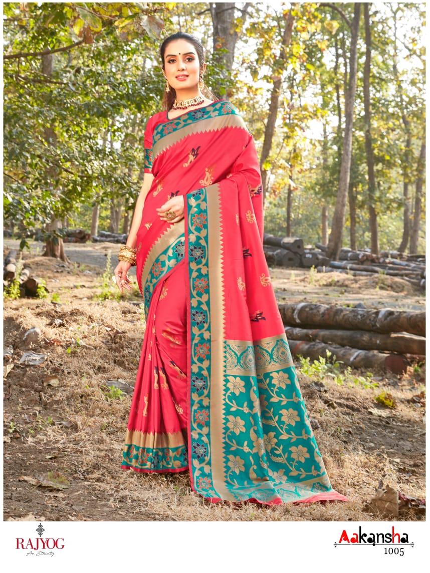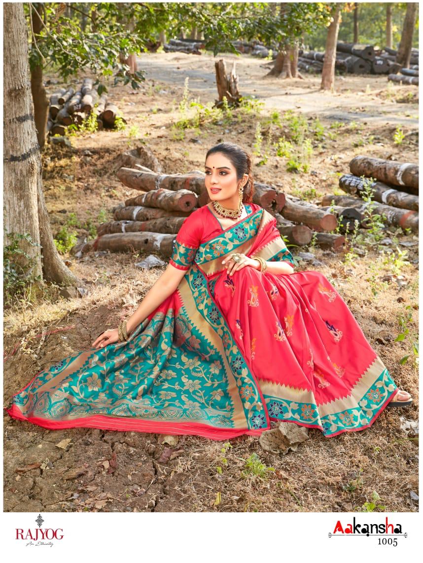 Aakansha Silk By Rajyog Series 1001 To 1005 Weaving Silk Sarees Set And Single Wholesale Supplier And Dealer Gujarat