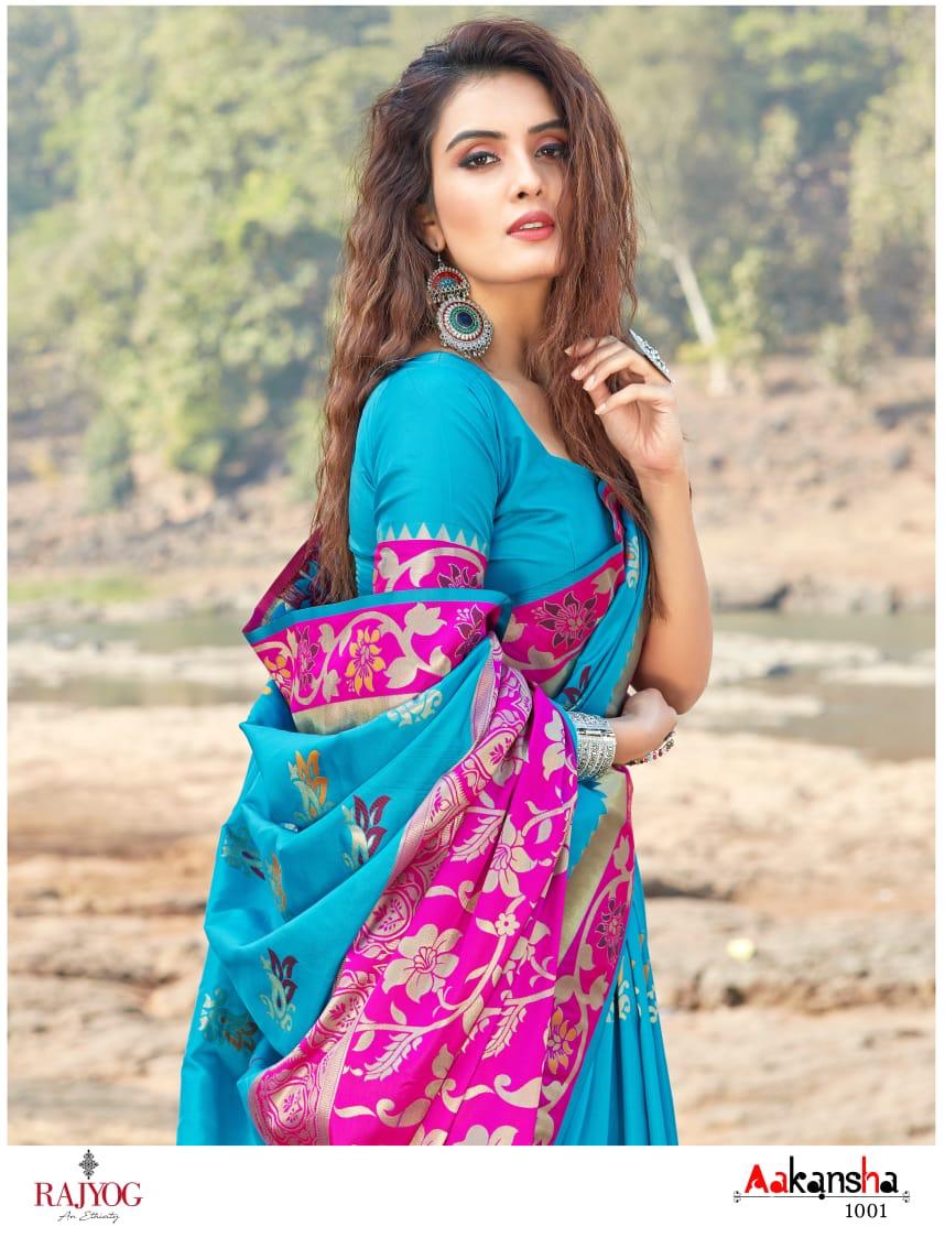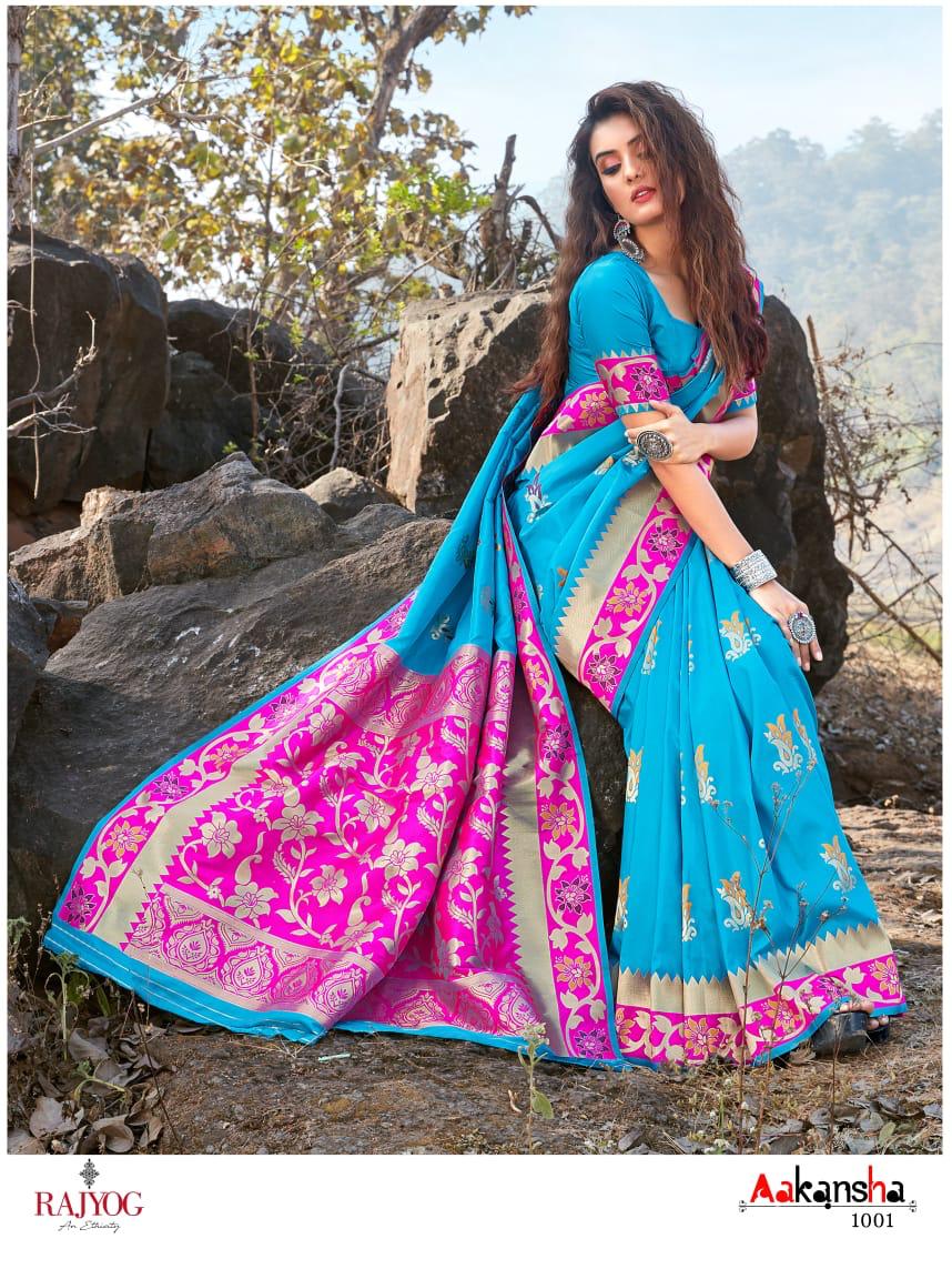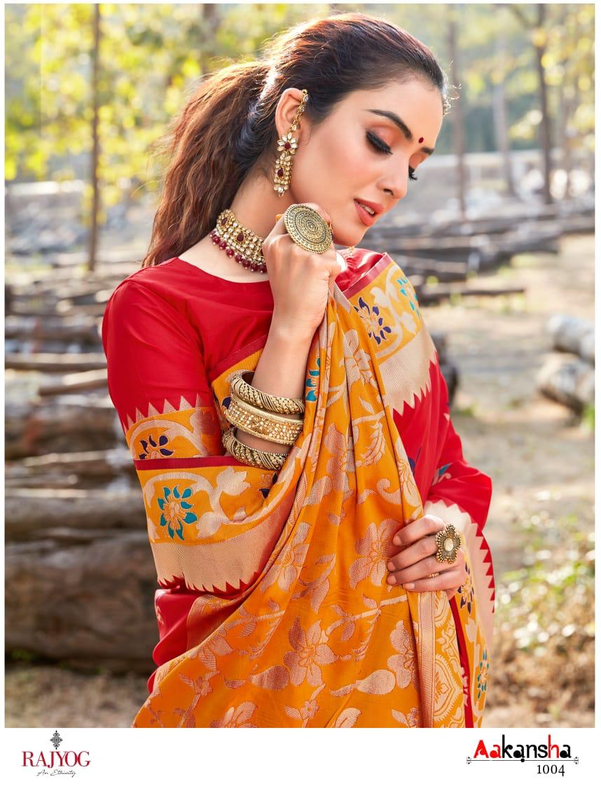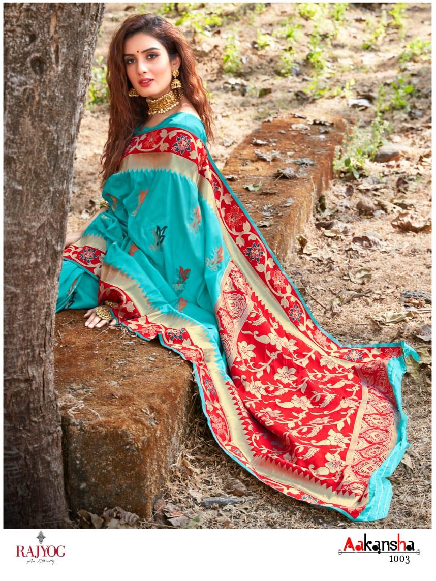 Aakansha Silk By Rajyog Series 1001 To 1005 Weaving Silk Sarees Set And Single Wholesale Supplier And Dealer Gujarat