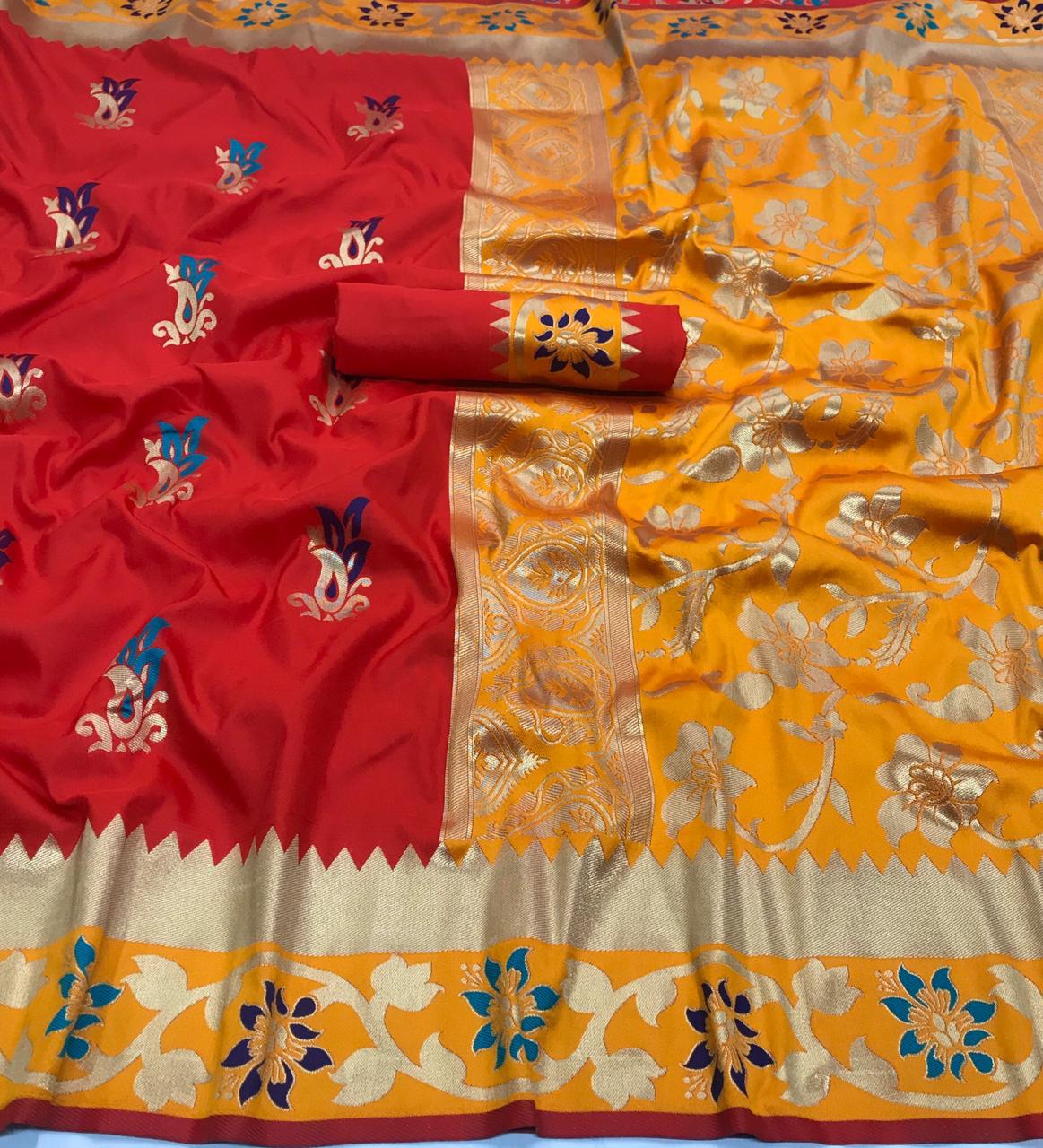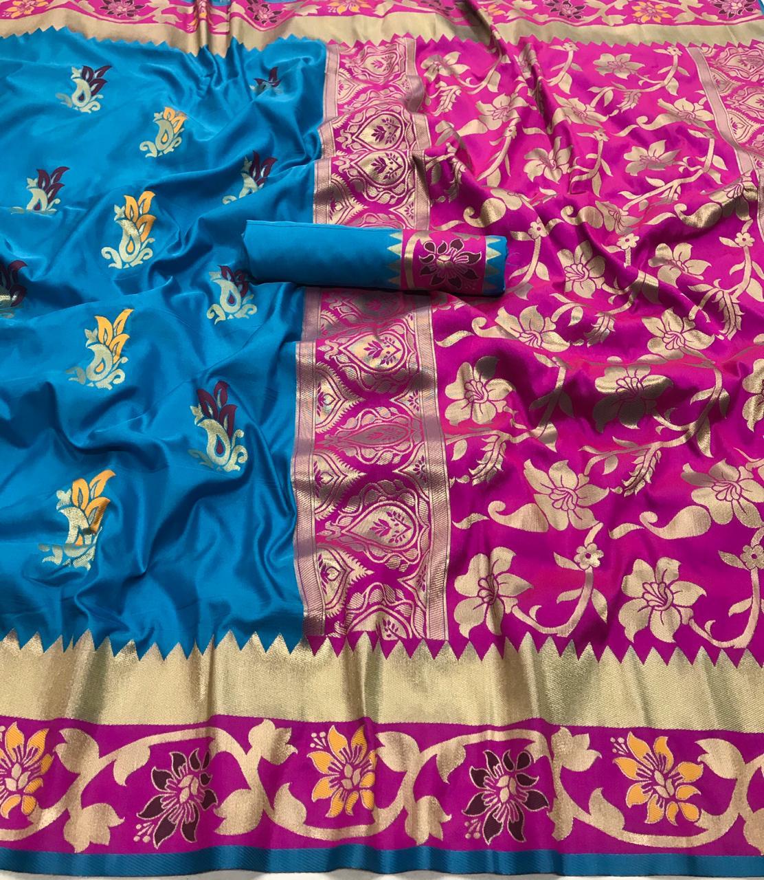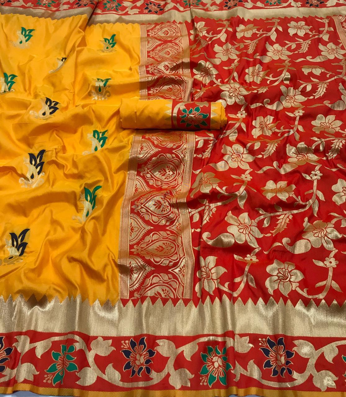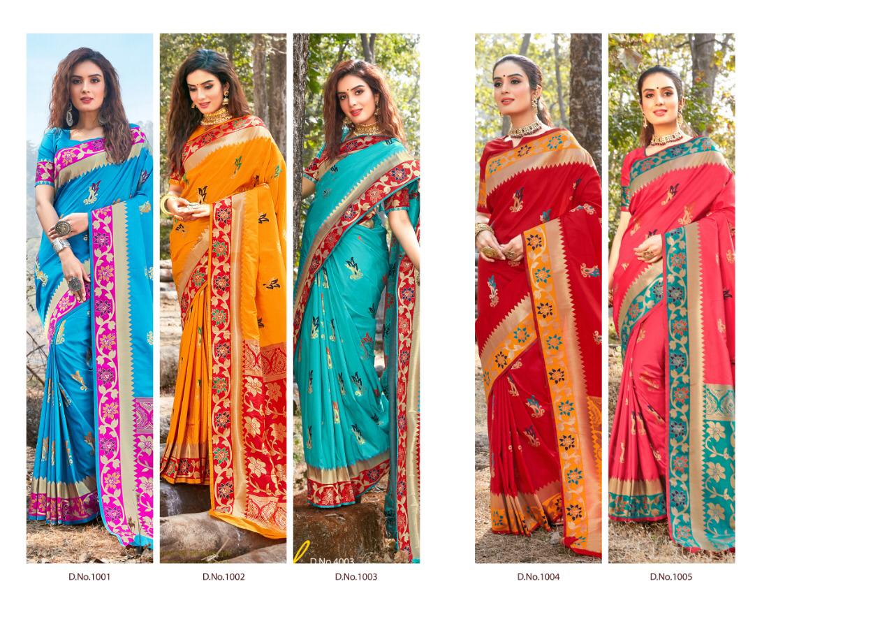 Aakansha Silk By Rajyog Series 1001 To 1005 Weaving Silk Sarees Set And Single Wholesale Supplier And Dealer Gujarat