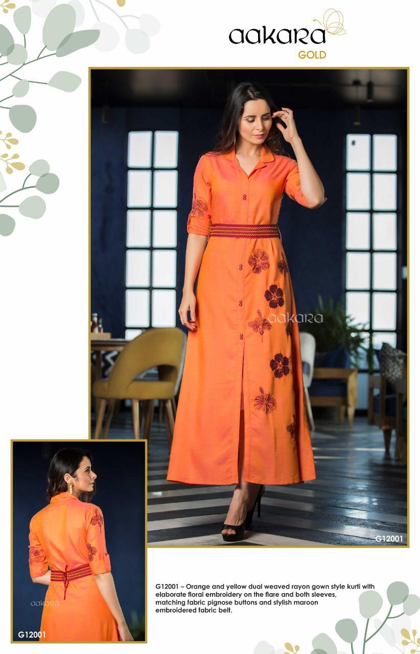Aakara Gold 12 By Aakara Gown Style Long Kurtis Collection Wholesale Supplier Gujarat