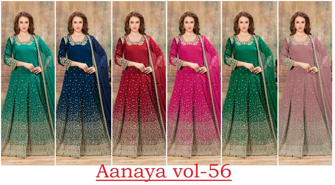 Buy Online Aanaya 56000 Series Vol 56 Designer Suits Wholesale Supplier Gujarat 6 Pcs of Full Catalogue at Wholesale Price. Looking for Aanaya 56000 Series Vol 56 Designer Suits Wholesale Supplier Gujarat Full Catalouge at Best Price? Buy Now Aanaya 56000 Series Vol 56 Designer Suits Wholesale Supplier Gujarat at Wholesale Rate of Rs 14970 with Total 6 Pcs from authroized dealer and supplier of AANAYA Brand. Cost of Each piece is just only Rs 2495 which is very low and affordable price to resale the product in your retail store ,This is Surat based Wholesale Supplier & Dealer of AANAYA Brand. Click on Brand name to Know more about AANAYA Brand's products.Call or Whatsapp on 9898838984 for booking or enquiry