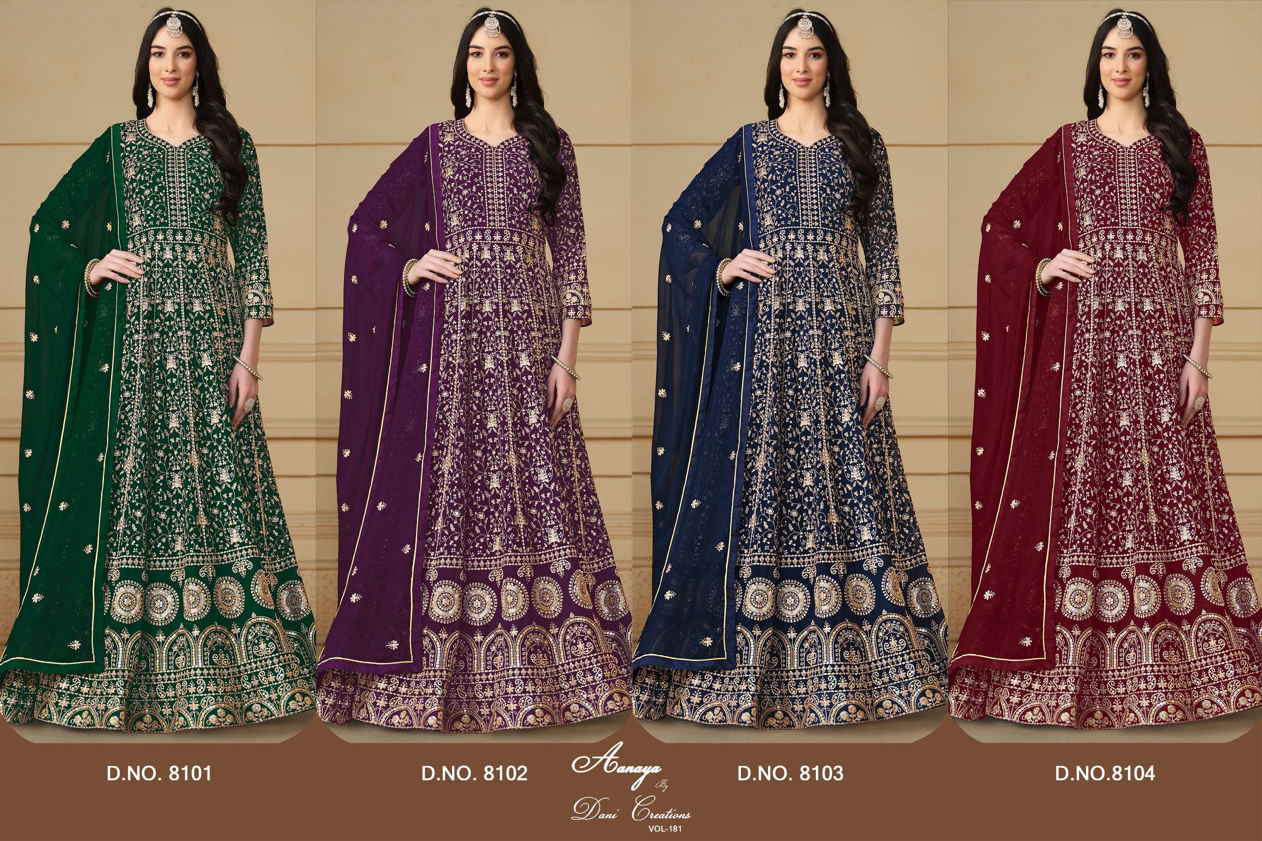 Buy Online AANAYA VOL 181 by Dani creation gown collection manufacturers surat 4 Pcs of Full Catalogue at Wholesale Price. Looking for AANAYA VOL 181 by Dani creation gown collection manufacturers surat Full Catalouge at Best Price? Buy Now AANAYA VOL 181 by Dani creation gown collection manufacturers surat at Wholesale Rate of Rs 9180 with Total 4 Pcs from authroized dealer and supplier of Dani Creation Brand. Cost of Each piece is just only Rs 2295 which is very low and affordable price to resale the product in your retail store ,This is Surat based Wholesale Supplier & Dealer of Dani Creation Brand. Click on Brand name to Know more about Dani Creation Brand's products.Call or Whatsapp on 9898838984 for booking or enquiry