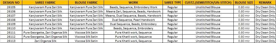 | Note | Stitching available on customer Requirment For Sarees , Salwar Kameez, Lehengha.(i.e M,L,XL,XXL). |
