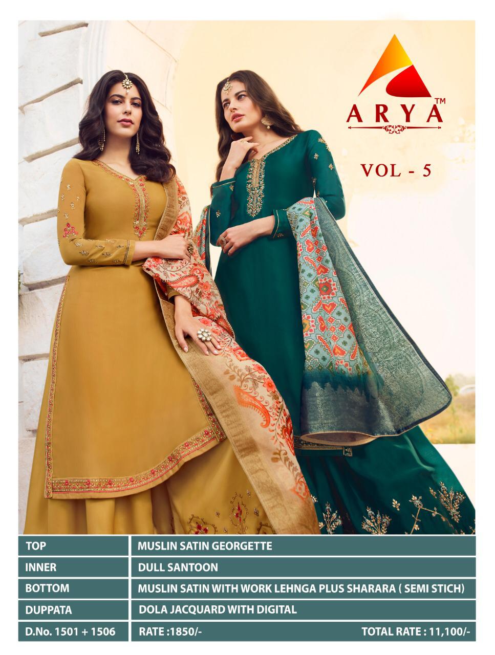 Buy Online Aaraya Vol 5 Series 1501 To 1506 Designer Party Wear Suits Set And Single Wholesale Supplier Gujarat 6 Pcs of Full Catalogue at Wholesale Price. Looking for Aaraya Vol 5 Series 1501 To 1506 Designer Party Wear Suits Set And Single Wholesale Supplier Gujarat Full Catalouge at Best Price? Buy Now Aaraya Vol 5 Series 1501 To 1506 Designer Party Wear Suits Set And Single Wholesale Supplier Gujarat at Wholesale Rate of Rs 11100 with Total 6 Pcs from authroized dealer and supplier of Brand. Cost of Each piece is just only Rs 1850 which is very low and affordable price to resale the product in your retail store ,This is Surat based Wholesale Supplier & Dealer of Brand. Click on Brand name to Know more about Brand's products.Call or Whatsapp on 9898838984 for booking or enquiry