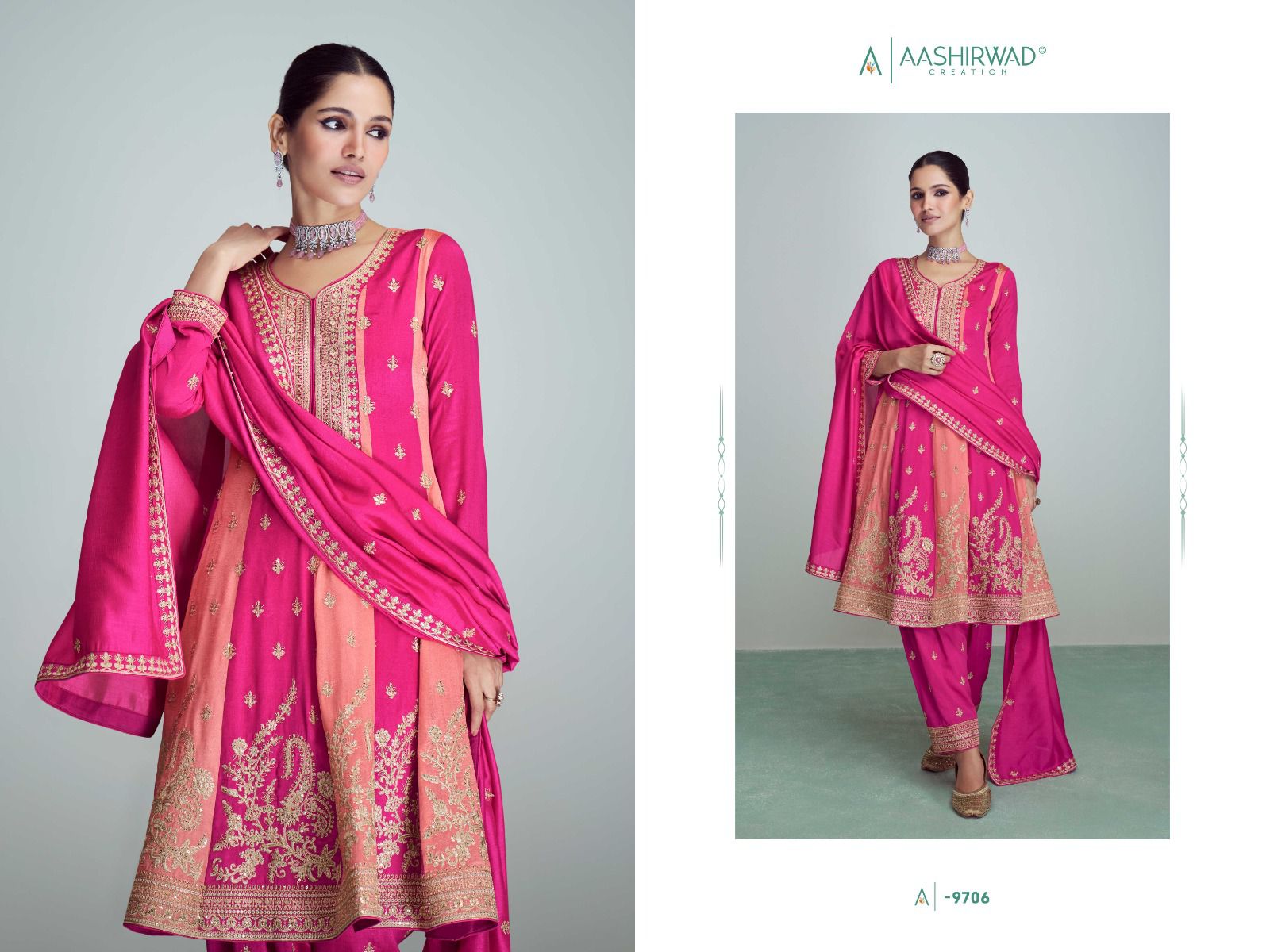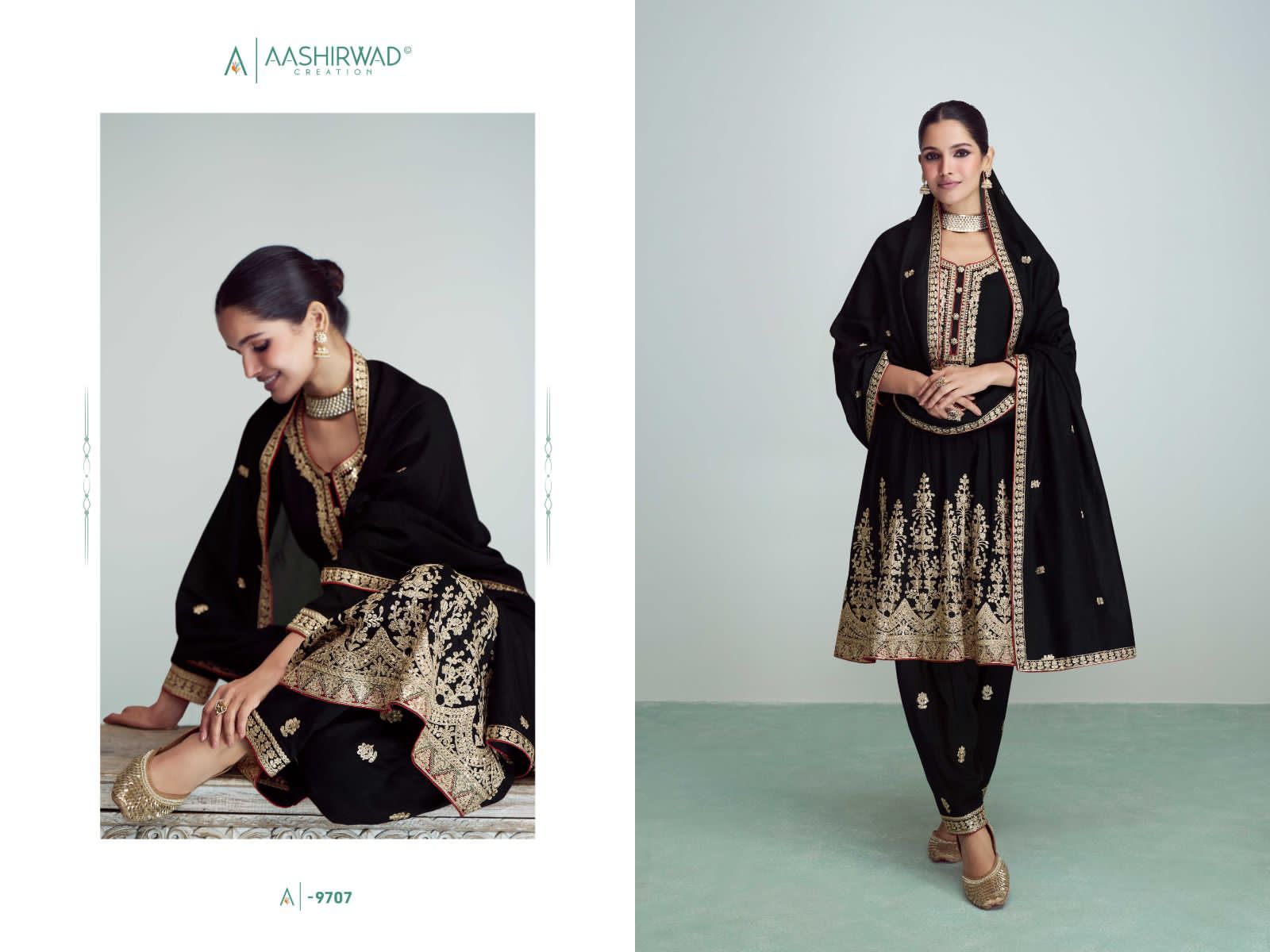 Aashirwad Creation New Launching Riwaaz Silk Suits Free Size Collection