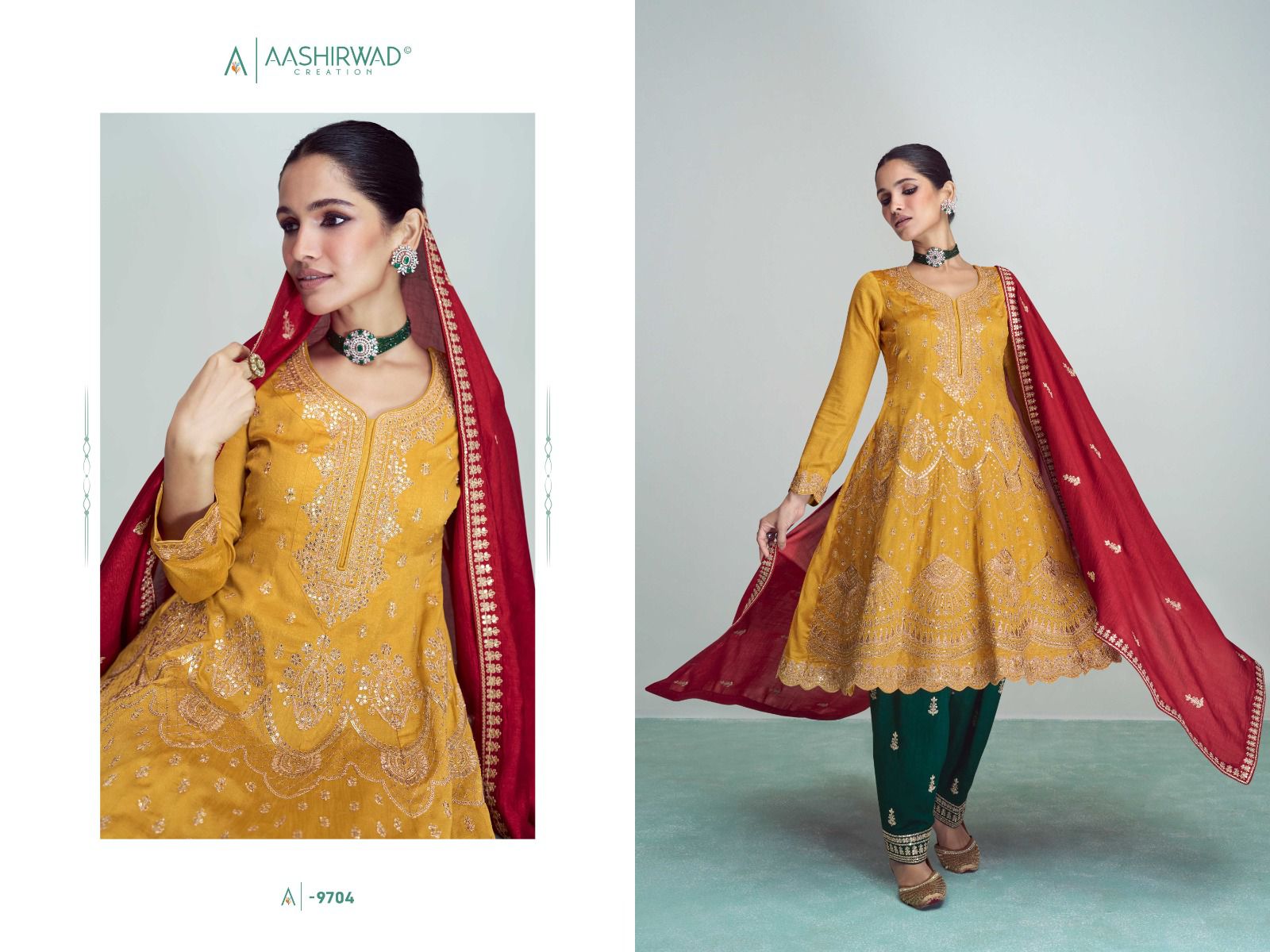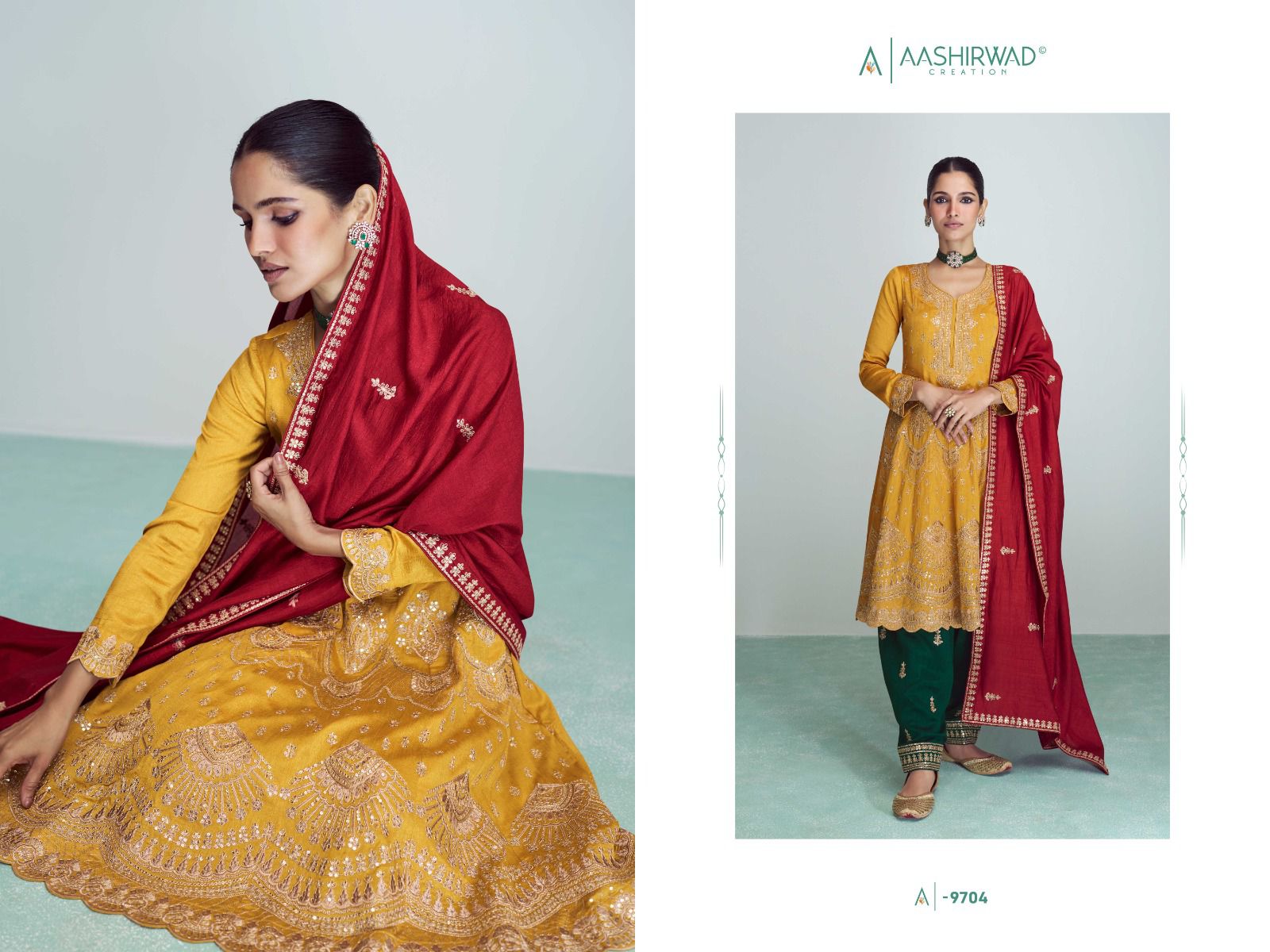 Buy Online Aashirwad Creation New Launching Riwaaz Silk Suits Free Size Collection 4 Pcs of Full Catalogue at Wholesale Price. Looking for Aashirwad Creation New Launching Riwaaz Silk Suits Free Size Collection Full Catalouge at Best Price? Buy Now Aashirwad Creation New Launching Riwaaz Silk Suits Free Size Collection at Wholesale Rate of Rs 9600 with Total 4 Pcs from authroized dealer and supplier of AASHIRWAD Brand. Cost of Each piece is just only Rs 2400 which is very low and affordable price to resale the product in your retail store ,This is Surat based Wholesale Supplier & Dealer of AASHIRWAD Brand. Click on Brand name to Know more about AASHIRWAD Brand's products.Call or Whatsapp on 9898838984 for booking or enquiry