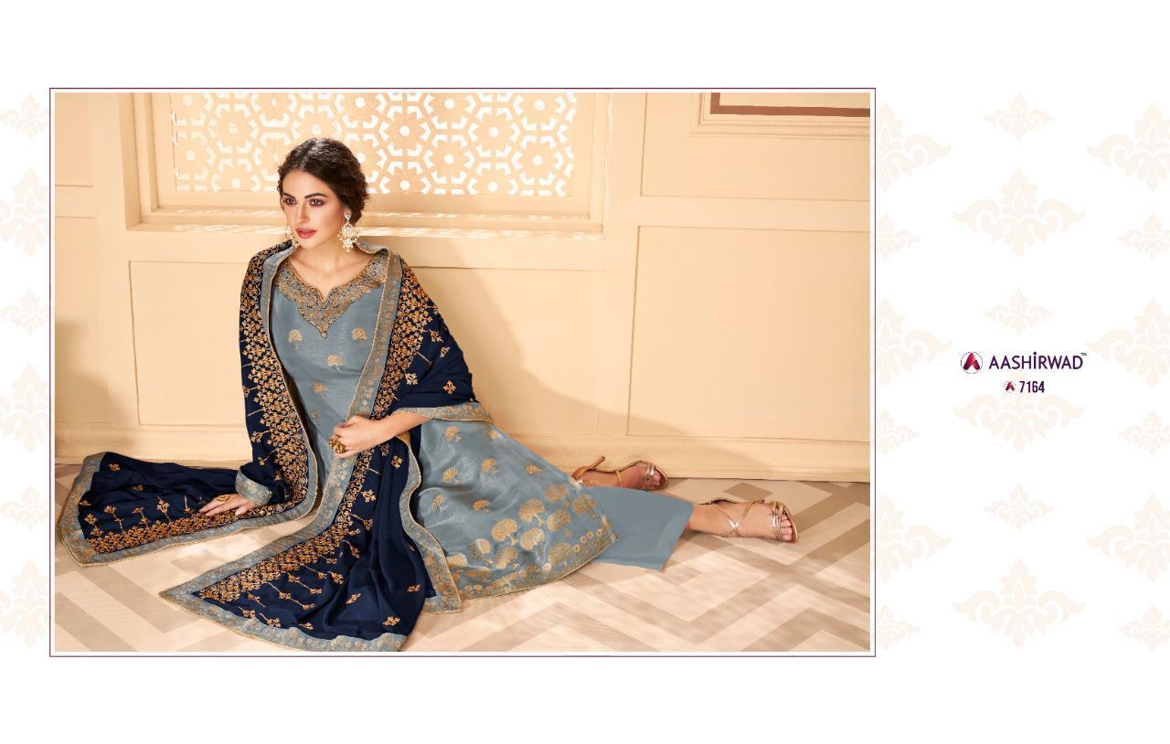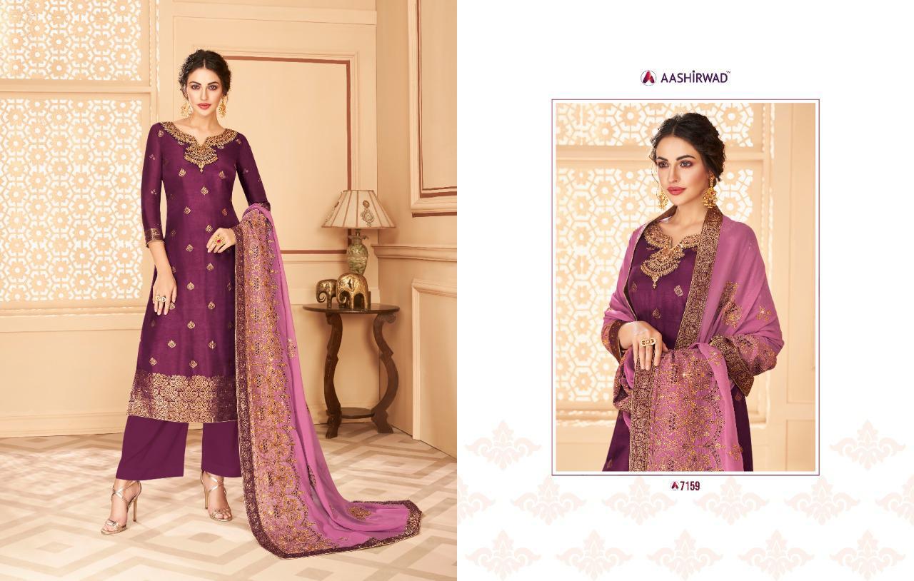 Buy Online Aashirwad Florence Series 7159 Designer Party Wear Suits Wholesale Supplier Gujarat 7 Pcs of Full Catalogue at Wholesale Price. Looking for Aashirwad Florence Series 7159 Designer Party Wear Suits Wholesale Supplier Gujarat Full Catalouge at Best Price? Buy Now Aashirwad Florence Series 7159 Designer Party Wear Suits Wholesale Supplier Gujarat at Wholesale Rate of Rs 16065 with Total 7 Pcs from authroized dealer and supplier of AASHIRWAD Brand. Cost of Each piece is just only Rs 2295 which is very low and affordable price to resale the product in your retail store ,This is Surat based Wholesale Supplier & Dealer of AASHIRWAD Brand. Click on Brand name to Know more about AASHIRWAD Brand's products.Call or Whatsapp on 9898838984 for booking or enquiry
