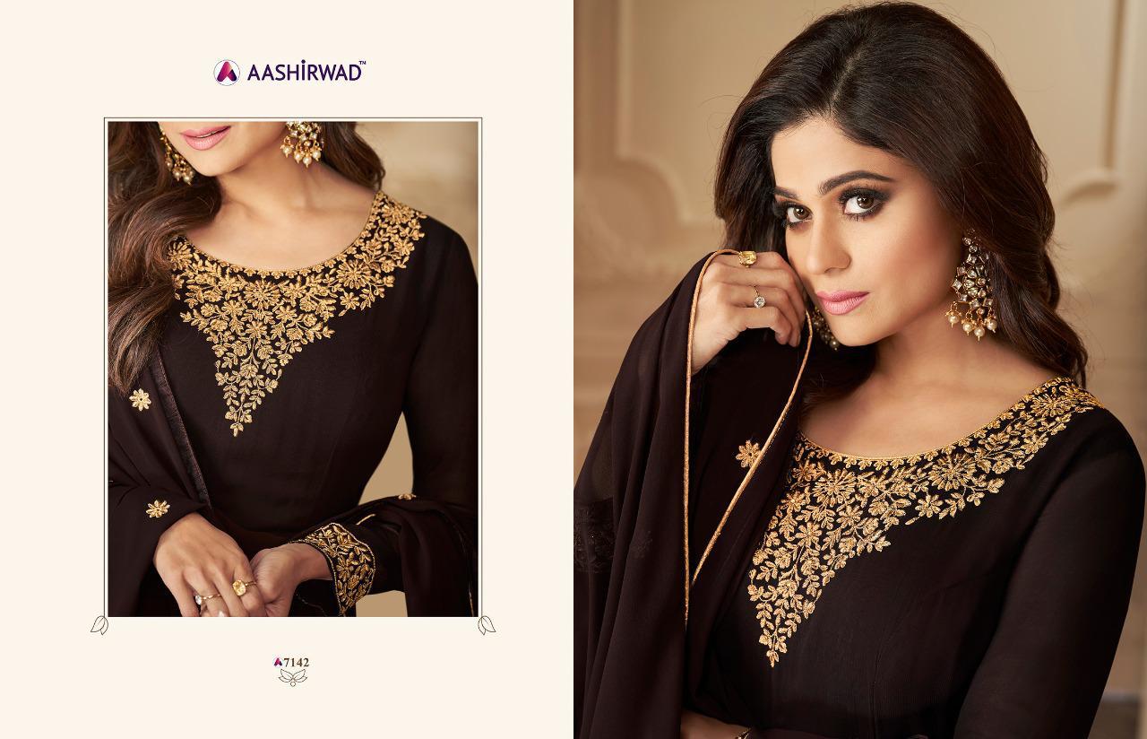 Buy Online Aashirwad Tahira Series 7142 Designer Suits Wholesale Supplier Gujarat 4 Pcs of Full Catalogue at Wholesale Price. Looking for Aashirwad Tahira Series 7142 Designer Suits Wholesale Supplier Gujarat Full Catalouge at Best Price? Buy Now Aashirwad Tahira Series 7142 Designer Suits Wholesale Supplier Gujarat at Wholesale Rate of Rs 9180 with Total 4 Pcs from authroized dealer and supplier of AASHIRWAD Brand. Cost of Each piece is just only Rs 2295 which is very low and affordable price to resale the product in your retail store ,This is Surat based Wholesale Supplier & Dealer of AASHIRWAD Brand. Click on Brand name to Know more about AASHIRWAD Brand's products.Call or Whatsapp on 9898838984 for booking or enquiry