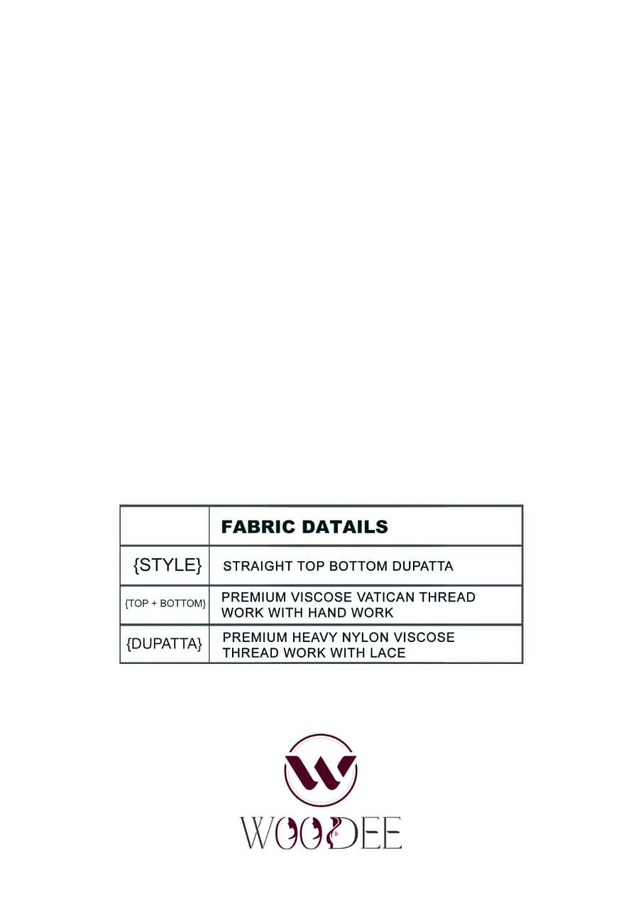 Brand : *WOODEE* Catalog : *AAVANI* Design : *6* 🥋 : Top + pant Premium quality viscose weaving 🧣: primium soft nylon viscose thread work with lace 🧵: Thread work with hand work