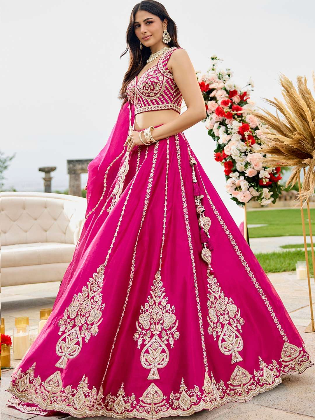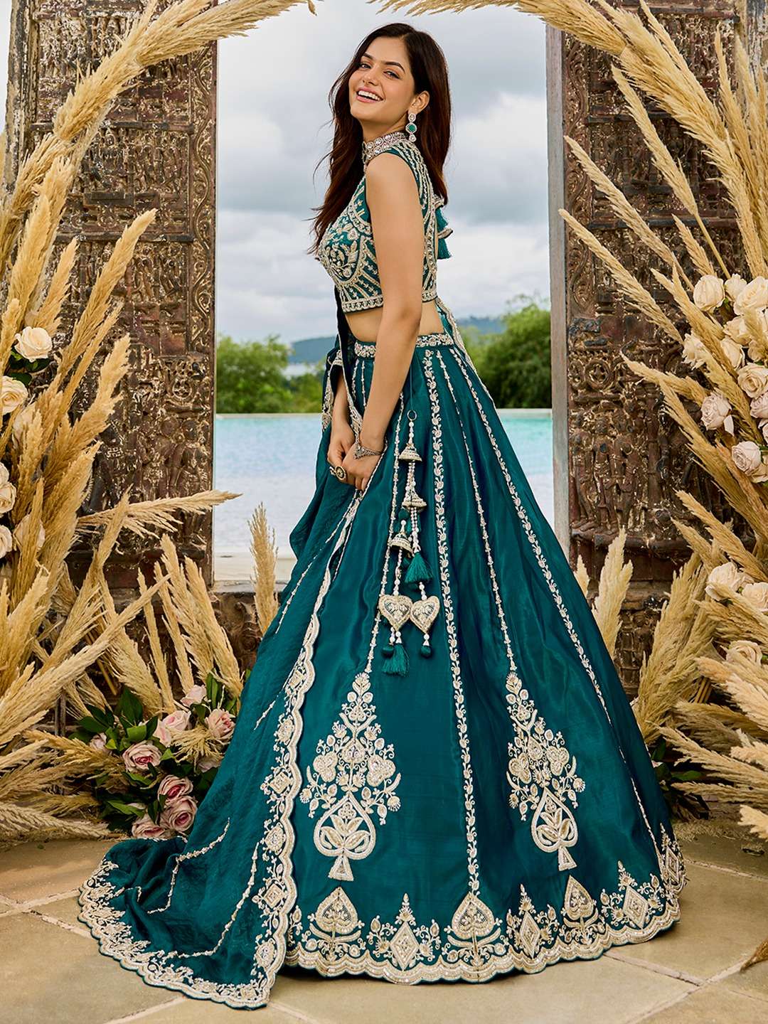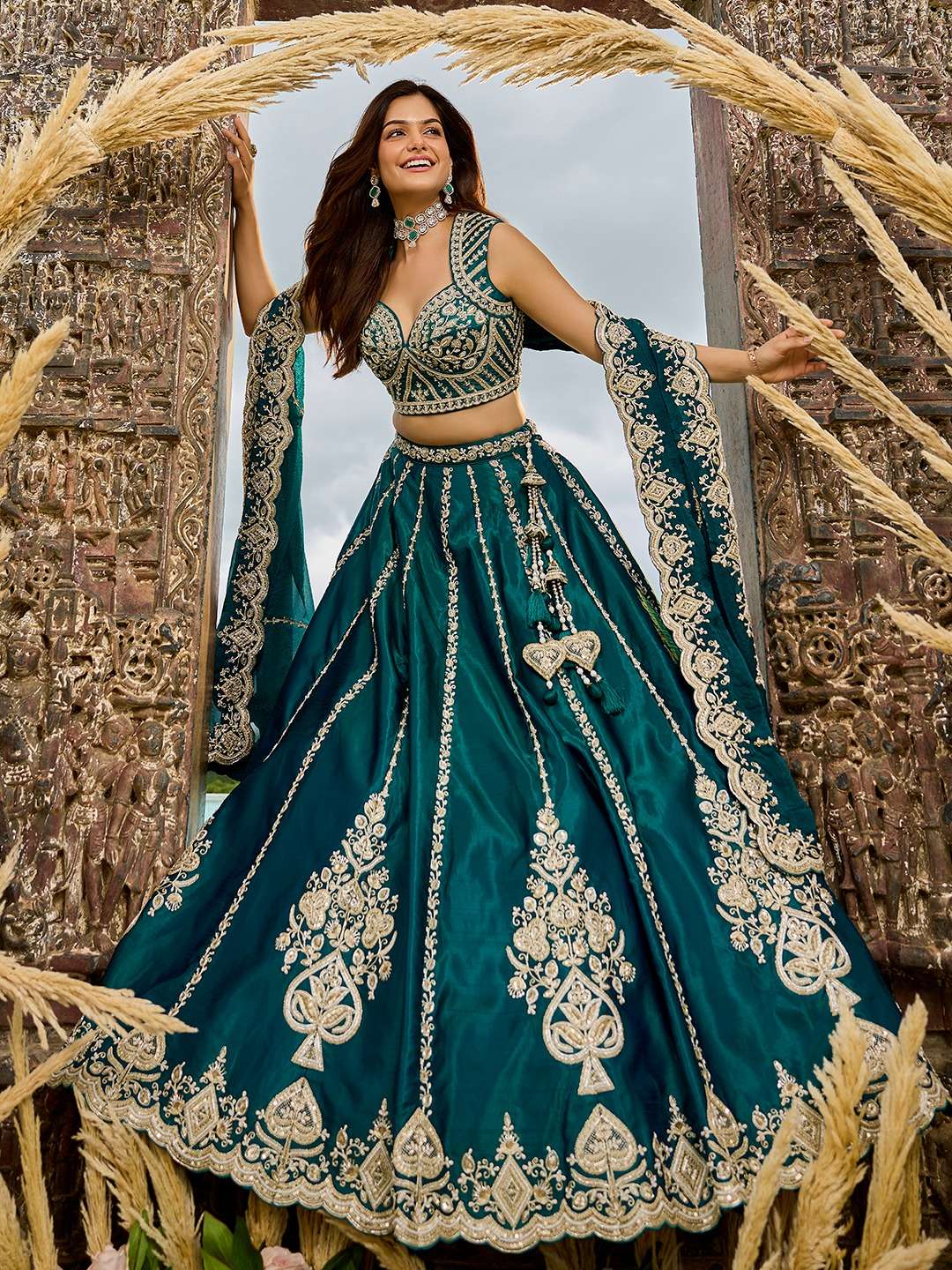 📏 Size Details: • Lehenga Waist: Up to 42 inches (customizable) • Lehenga Length: 42 inches • Lehenga Flair: 4 meter • Blouse Bust: Up to 42 inches (unstitched) • Dupatta Length: 2.50 meter • Dupatta Width: 1 meter