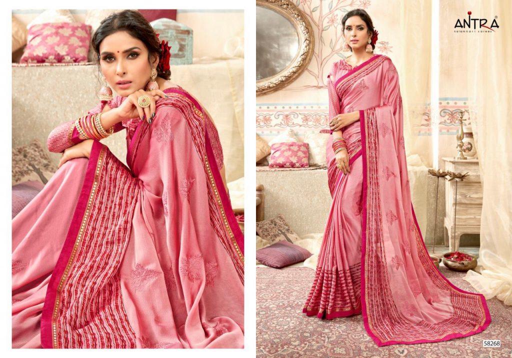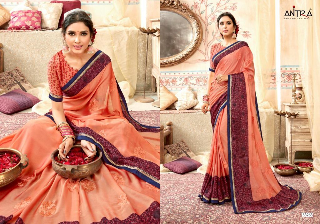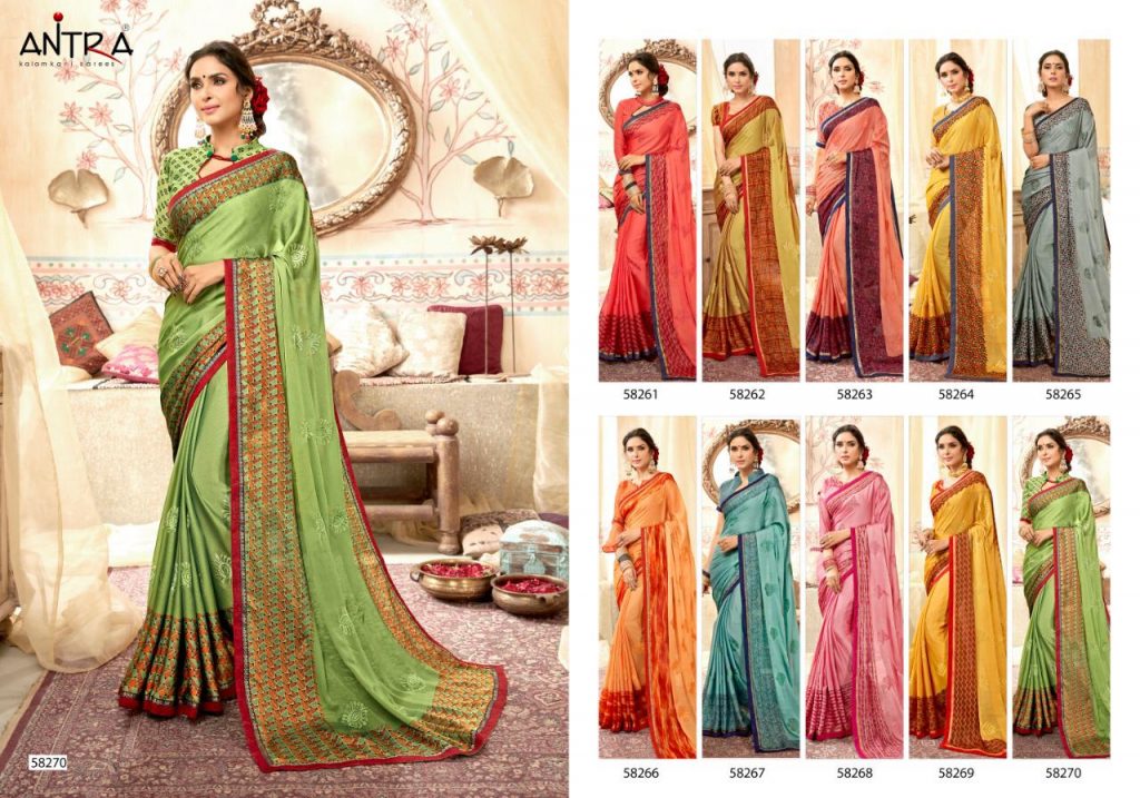 Afsana By Antra Lifestyle 58261 Series Fancy Moss Chiffon Printed Silk Emb Saree Collection Wholesaler Surat