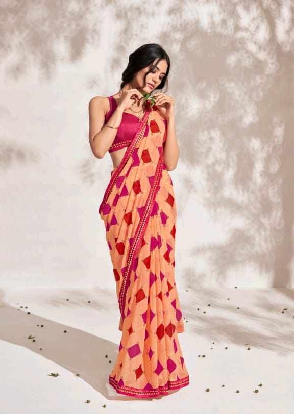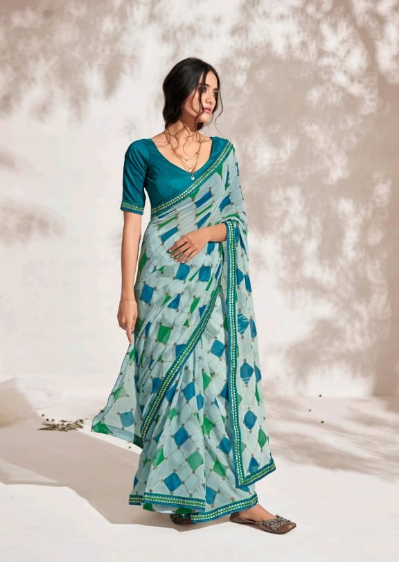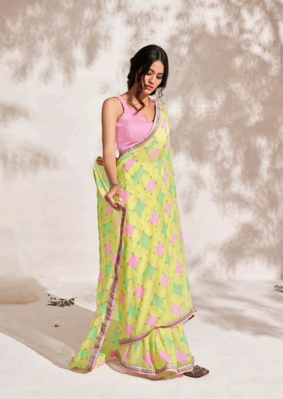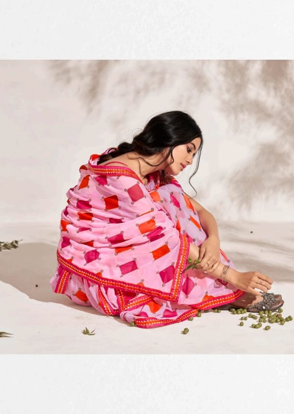 Aishwarya Shangrila presents New Designer Prints On Pure Georgette Fabric With Fancy Gota Border...!! 6 pc 795/- |