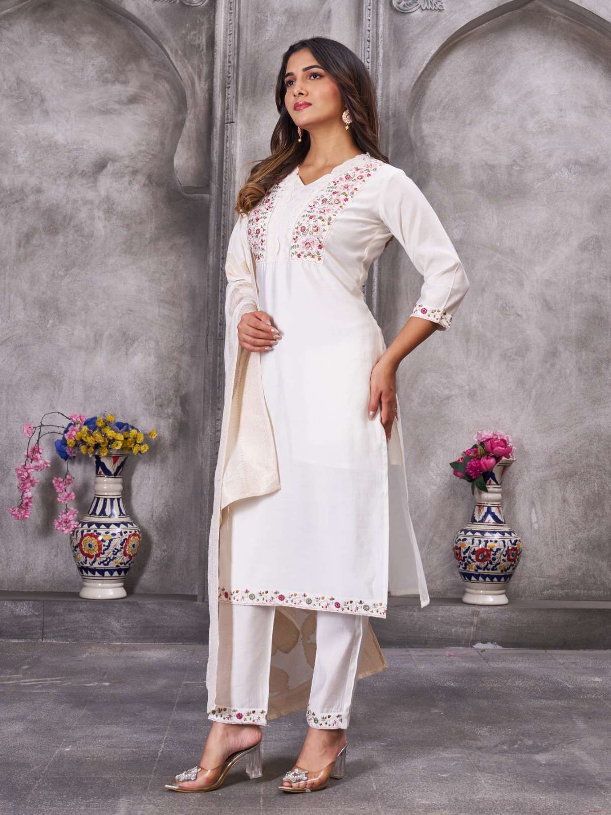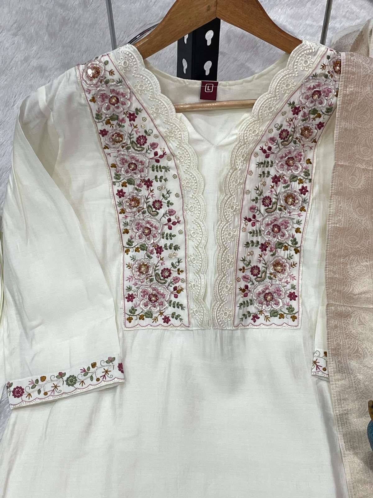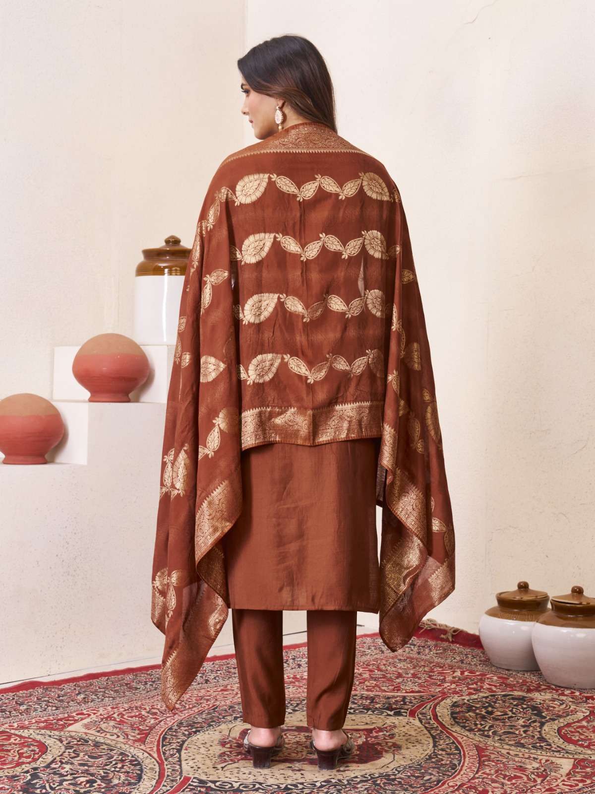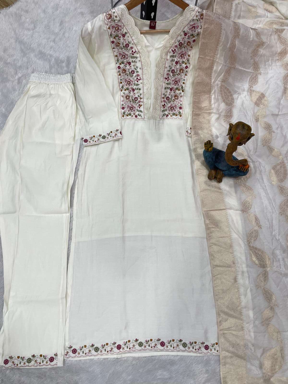 👉🏻 *Dupatta* 👇 Fabric :-Maslin Silk Work :- jacquard Whit Meena Work Length :- 2.25 Meter Package Contains :- Kurti, Pant, Dupatta Weight: 0.55 kg