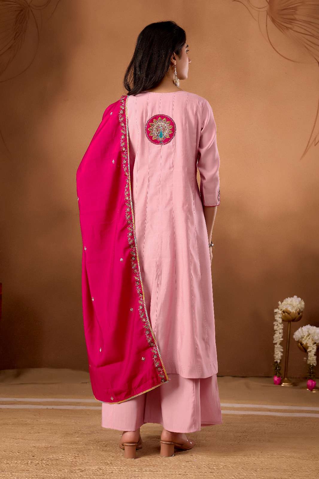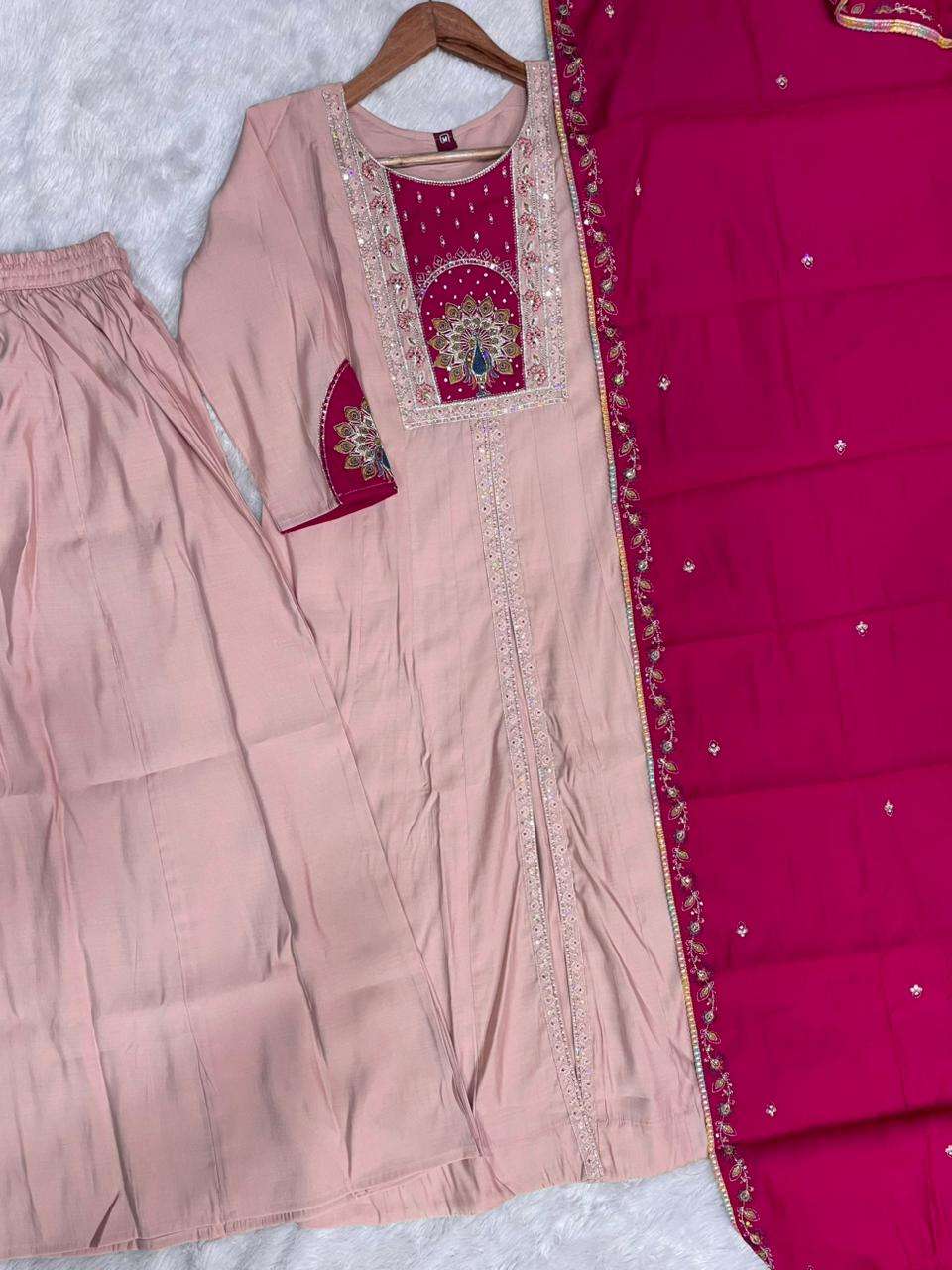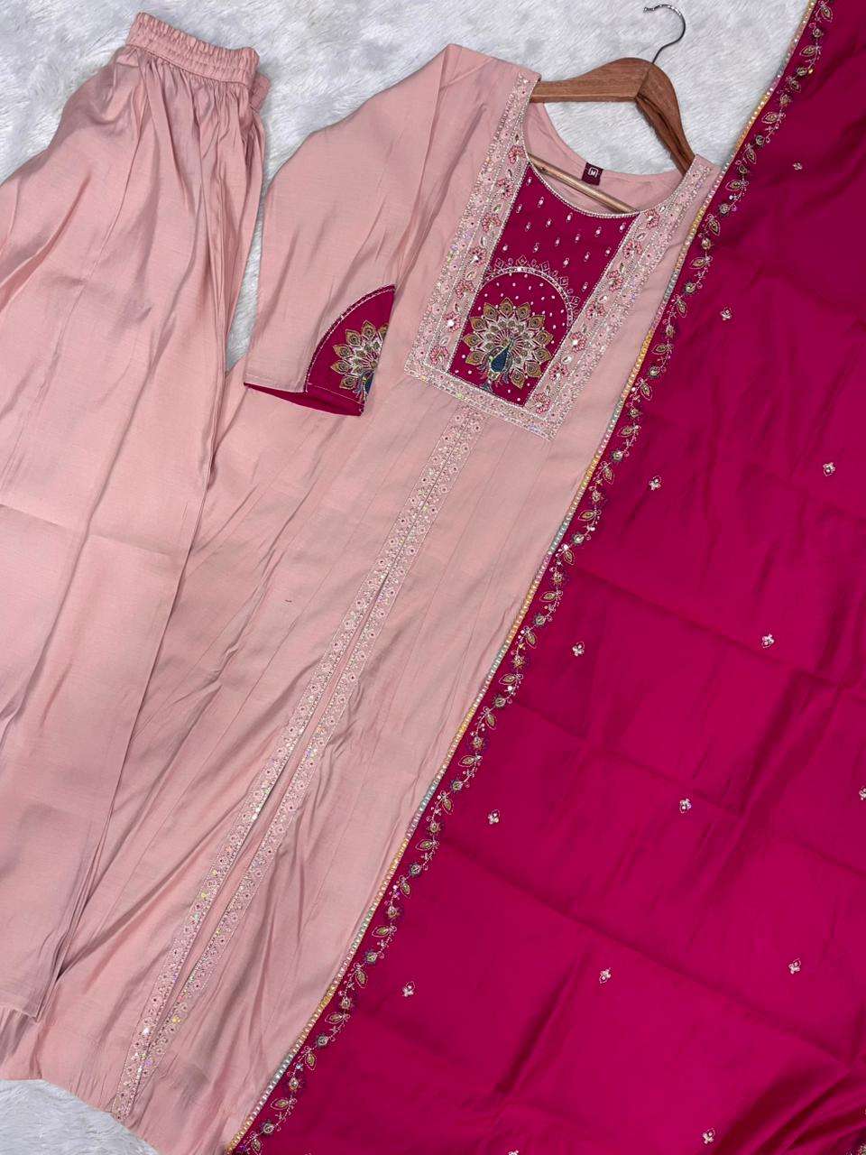 👉🏻*Dupatta* Fabric :- Roman Silk Work :- Heavy Embroidery Work With Border Less Work. Length :- 2.20 Meter Package Contains :- Kurti, plazo, Dupatta Weight: 0.650 kg