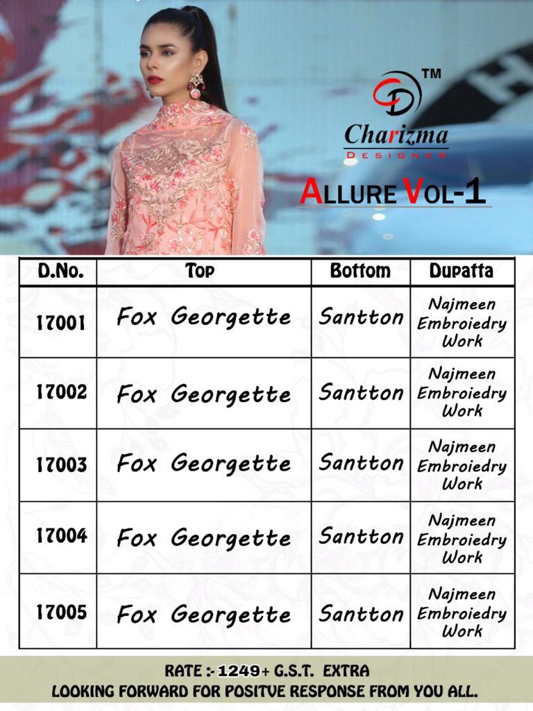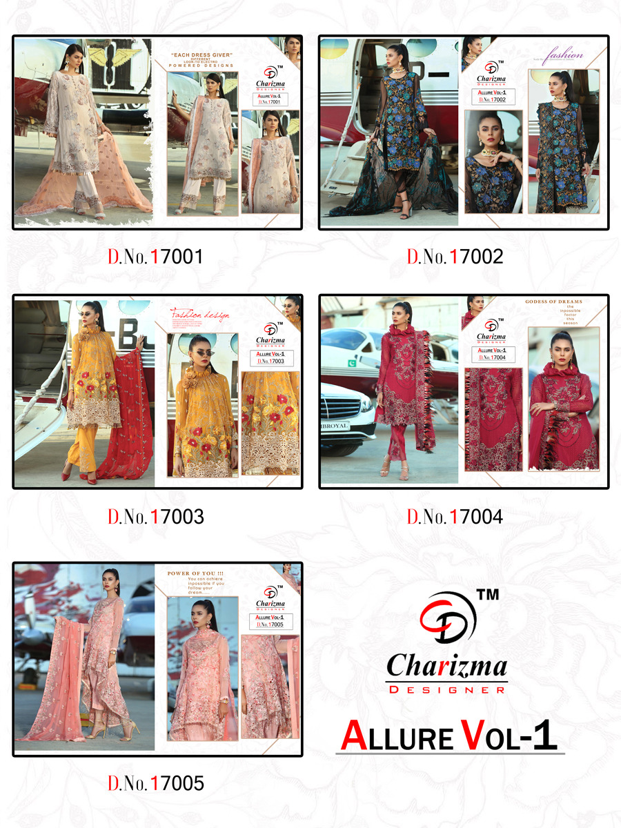Allure Vol 1 By Charizma Designer Series 17001 To 17005 Pakistani Suits Wholesale Supplier Gujarat