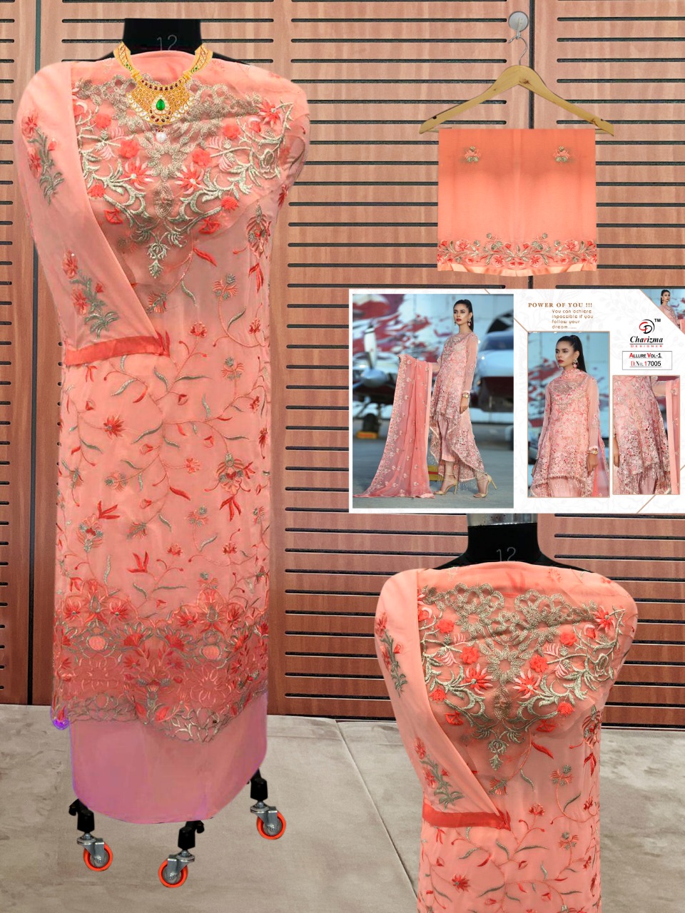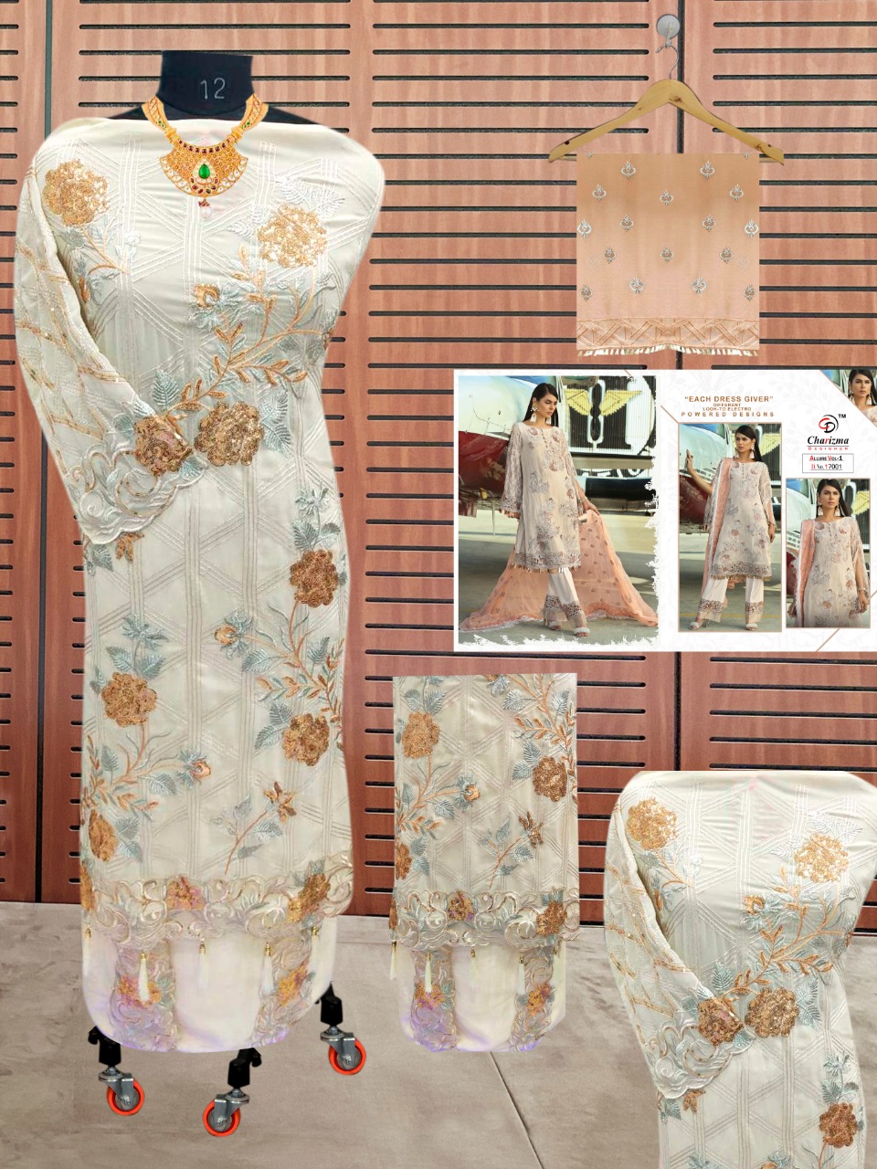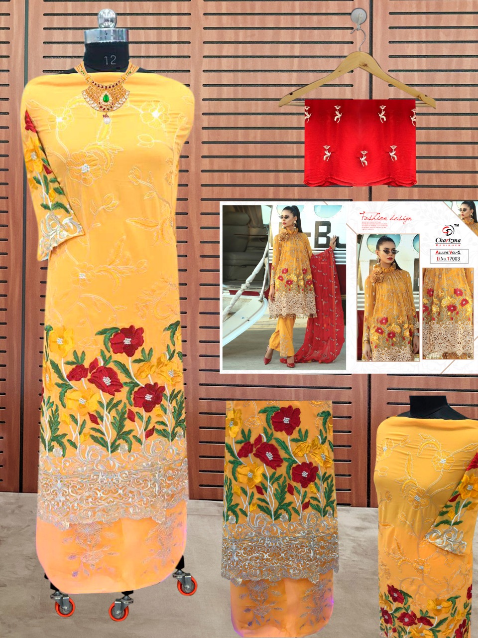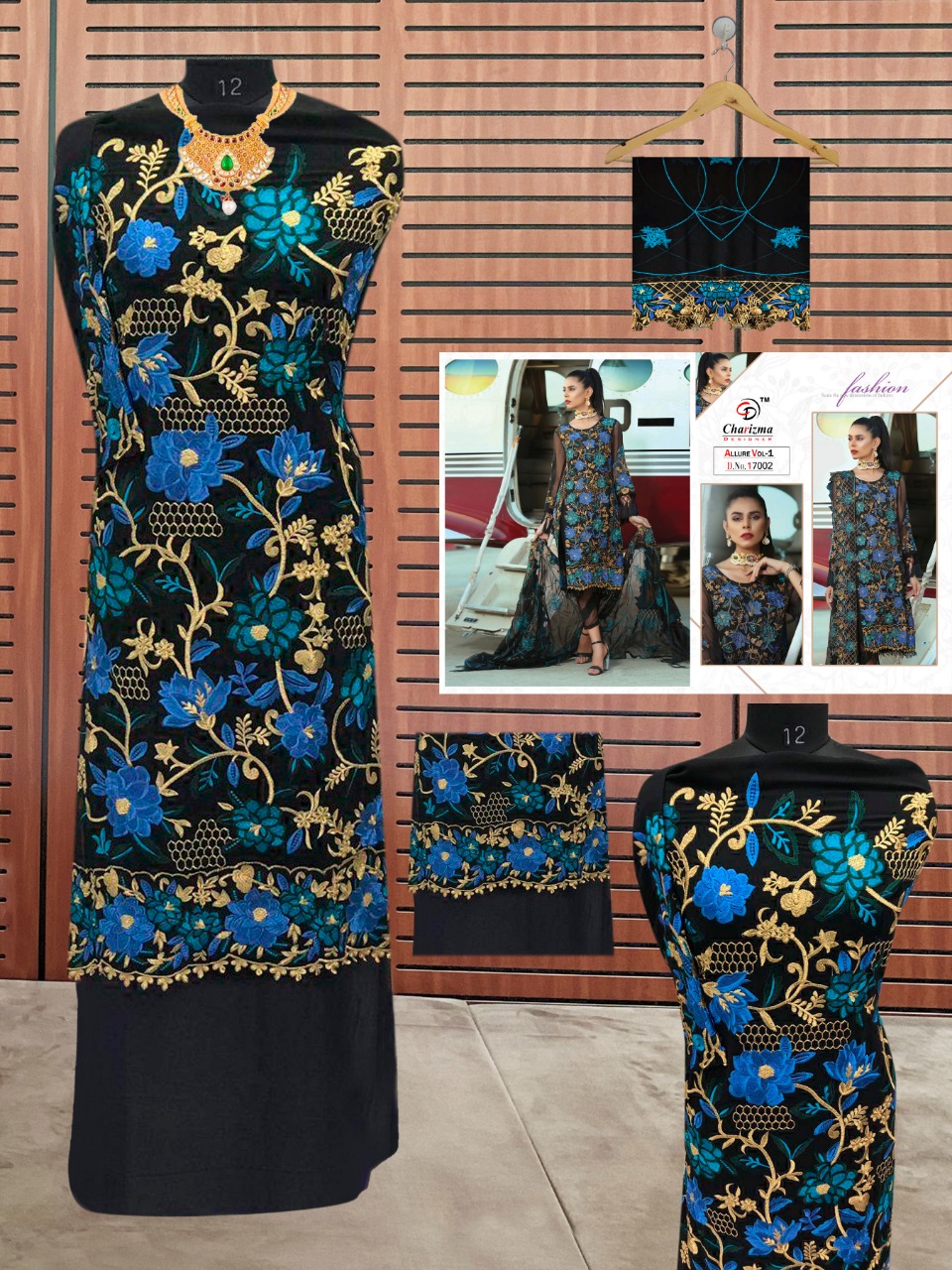 Buy Online Allure Vol 1 By Charizma Designer Series 17001 To 17005 Pakistani Suits Wholesale Supplier Gujarat 5 Pcs of Full Catalogue at Wholesale Price. Looking for Allure Vol 1 By Charizma Designer Series 17001 To 17005 Pakistani Suits Wholesale Supplier Gujarat Full Catalouge at Best Price? Buy Now Allure Vol 1 By Charizma Designer Series 17001 To 17005 Pakistani Suits Wholesale Supplier Gujarat at Wholesale Rate of Rs 6245 with Total 5 Pcs from authroized dealer and supplier of Brand. Cost of Each piece is just only Rs 1249 which is very low and affordable price to resale the product in your retail store ,This is Surat based Wholesale Supplier & Dealer of Brand. Click on Brand name to Know more about Brand's products.Call or Whatsapp on 9898838984 for booking or enquiry