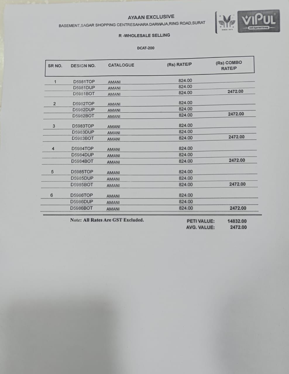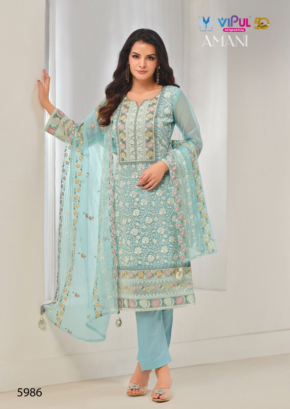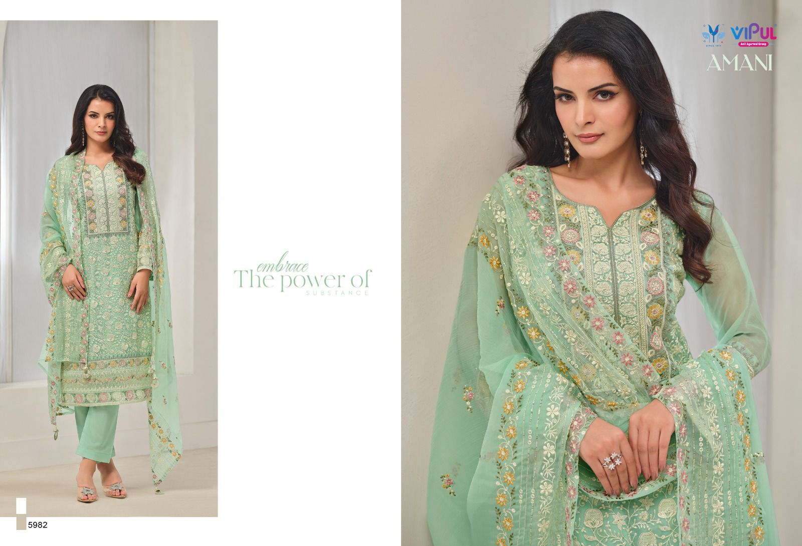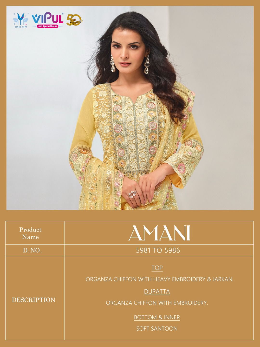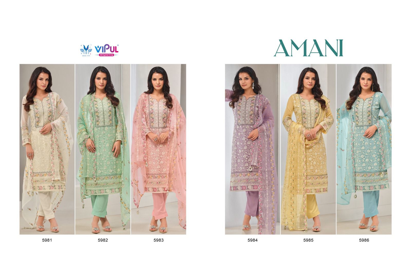 Vipul Amani 5981 To 5986 Fabrics & price list attached GST 5% EXTRA Single available Book your order now 100+ SINGLE |