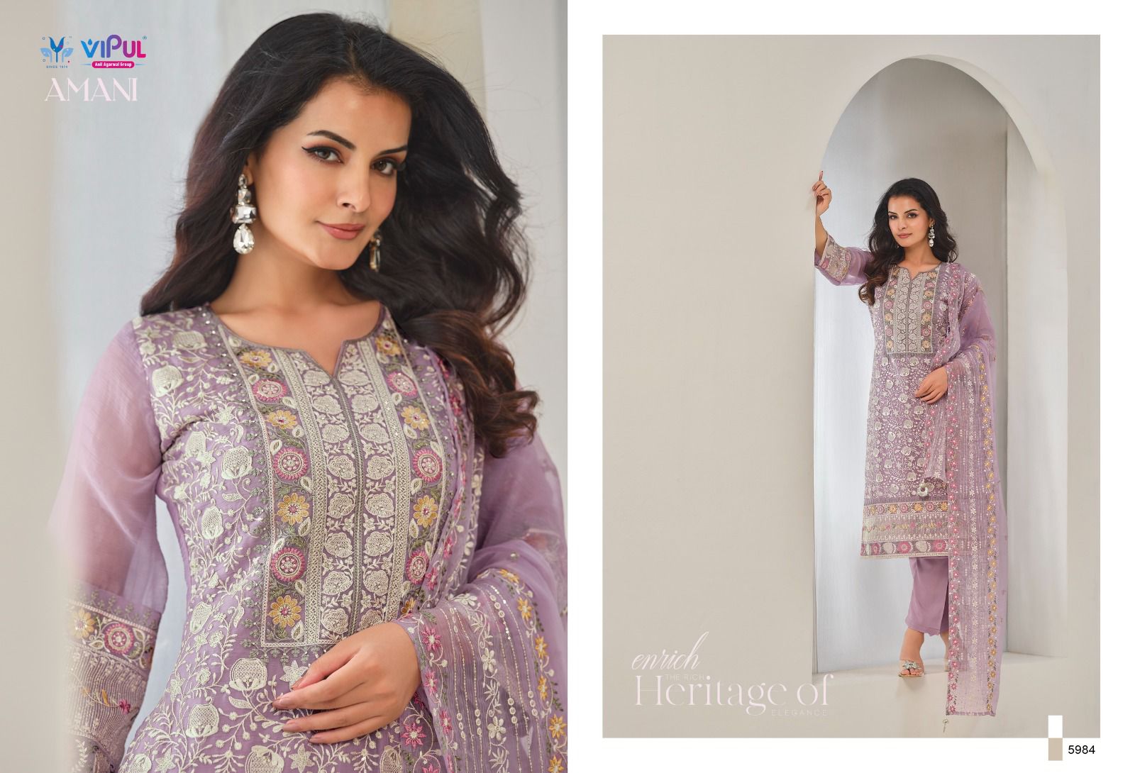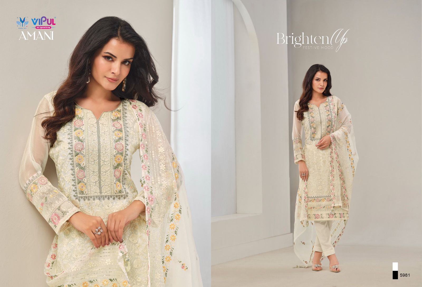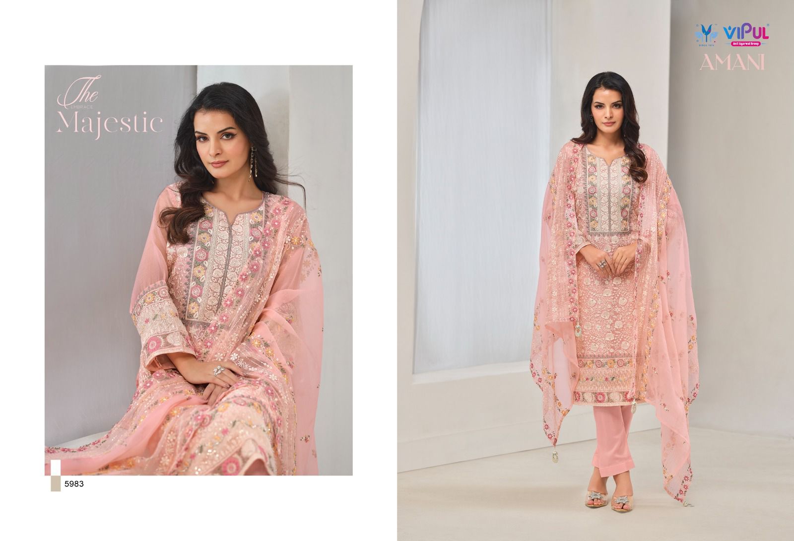 Buy Online Amani Series 5981 To 5986 By Vipul 6 Pcs of Full Catalogue at Wholesale Price. Looking for Amani Series 5981 To 5986 By Vipul Full Catalouge at Best Price? Buy Now Amani Series 5981 To 5986 By Vipul at Wholesale Rate of Rs 14832 with Total 6 Pcs from authroized dealer and supplier of VIPUL Brand. Cost of Each piece is just only Rs 2472 which is very low and affordable price to resale the product in your retail store ,This is Surat based Wholesale Supplier & Dealer of VIPUL Brand. Click on Brand name to Know more about VIPUL Brand's products.Call or Whatsapp on 9898838984 for booking or enquiry