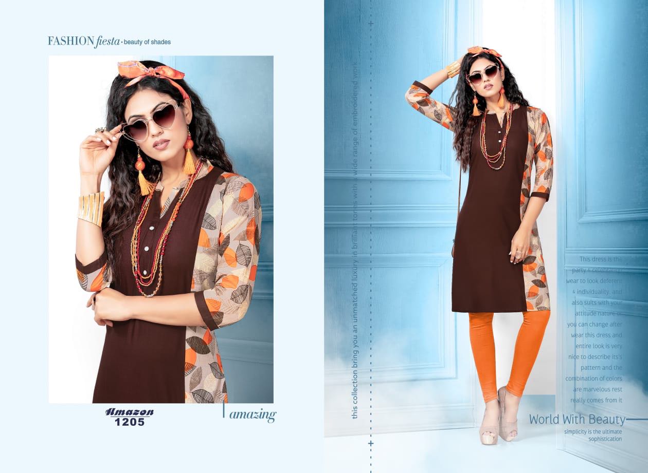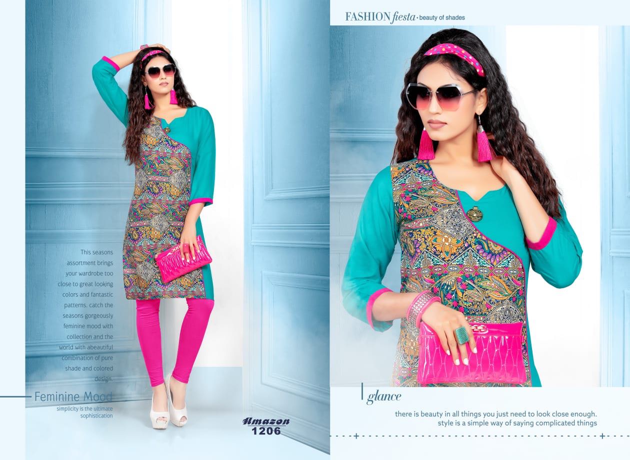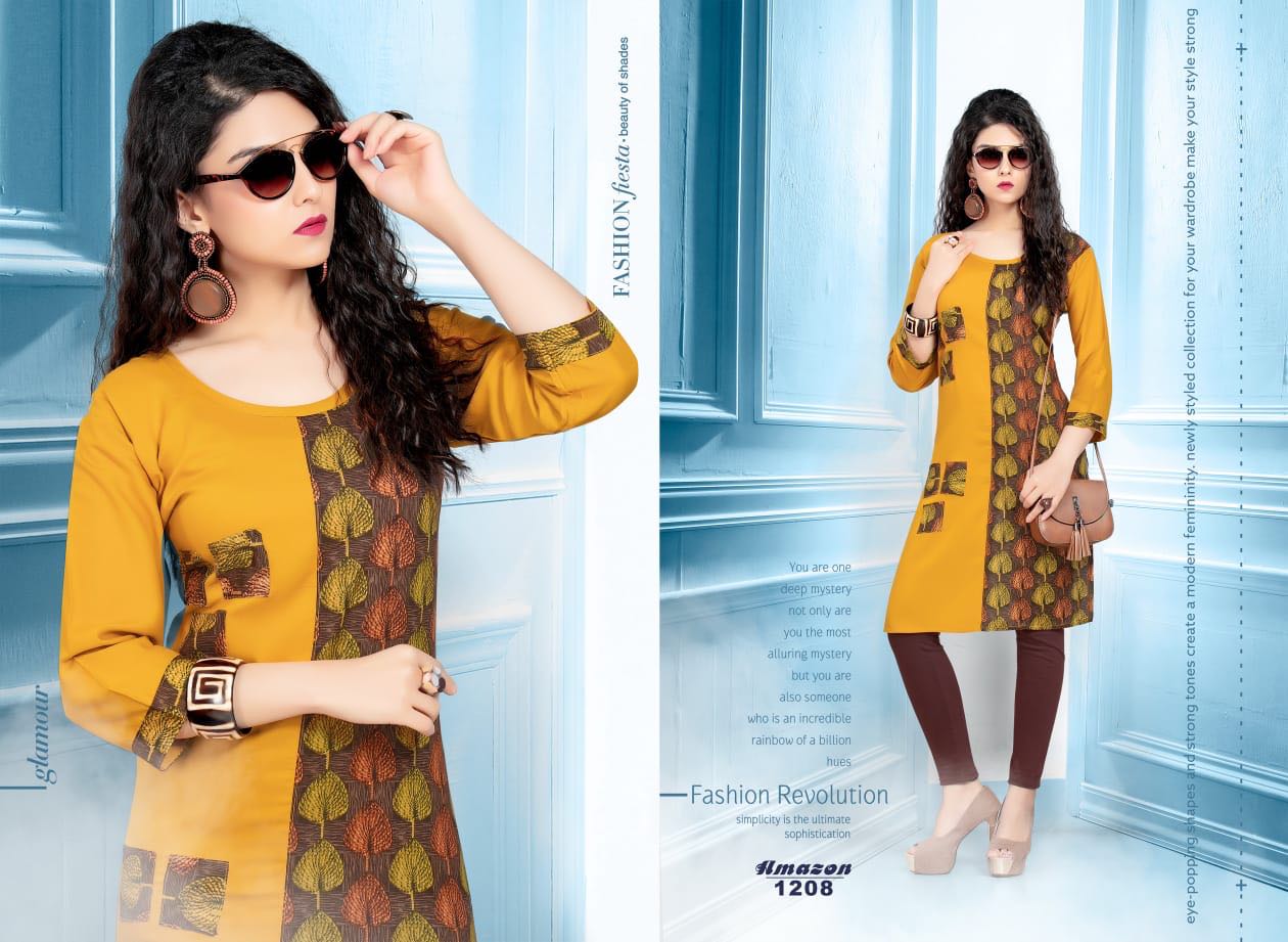 Buy Online Amazon By Gj Fab Tex Reyon Cotton Printed Kurtis Wholesale Supplier And Dealer Surat 8 Pcs of Full Catalogue at Wholesale Price. Looking for Amazon By Gj Fab Tex Reyon Cotton Printed Kurtis Wholesale Supplier And Dealer Surat Full Catalouge at Best Price? Buy Now Amazon By Gj Fab Tex Reyon Cotton Printed Kurtis Wholesale Supplier And Dealer Surat at Wholesale Rate of Rs 2520 with Total 8 Pcs from authroized dealer and supplier of Brand. Cost of Each piece is just only Rs 315 which is very low and affordable price to resale the product in your retail store ,This is Surat based Wholesale Supplier & Dealer of Brand. Click on Brand name to Know more about Brand's products.Call or Whatsapp on 9898838984 for booking or enquiry