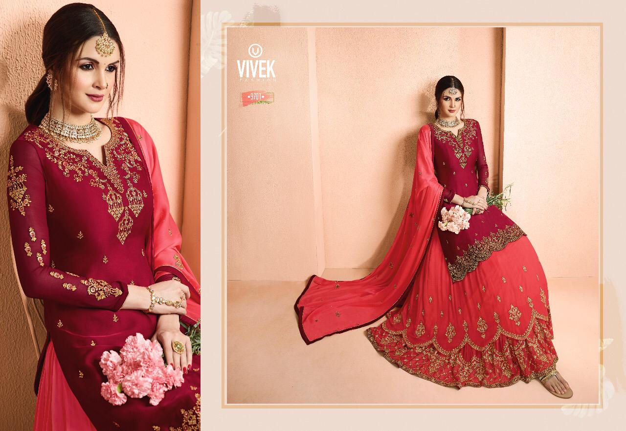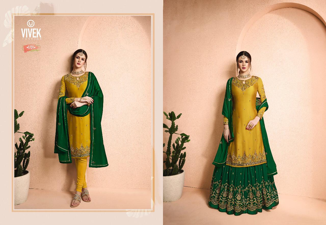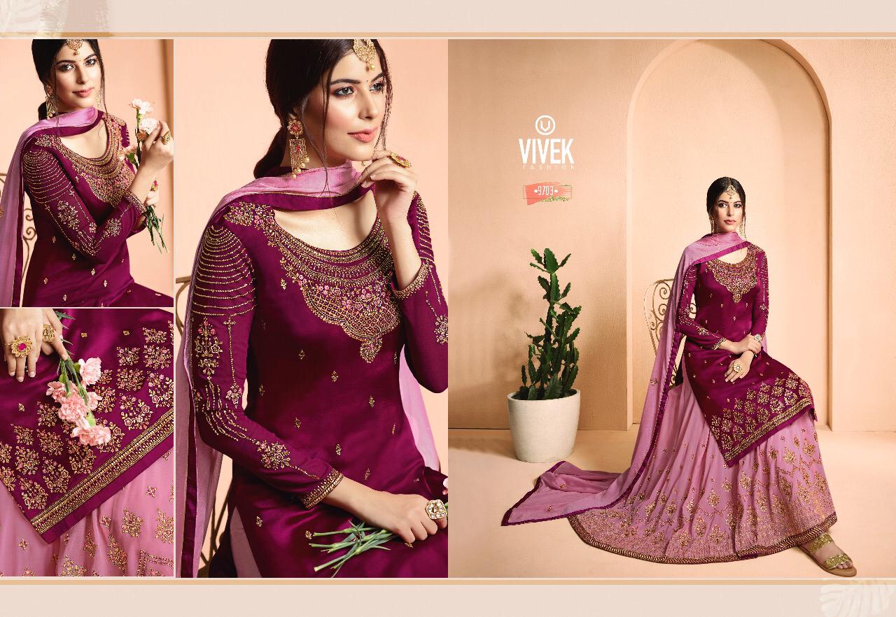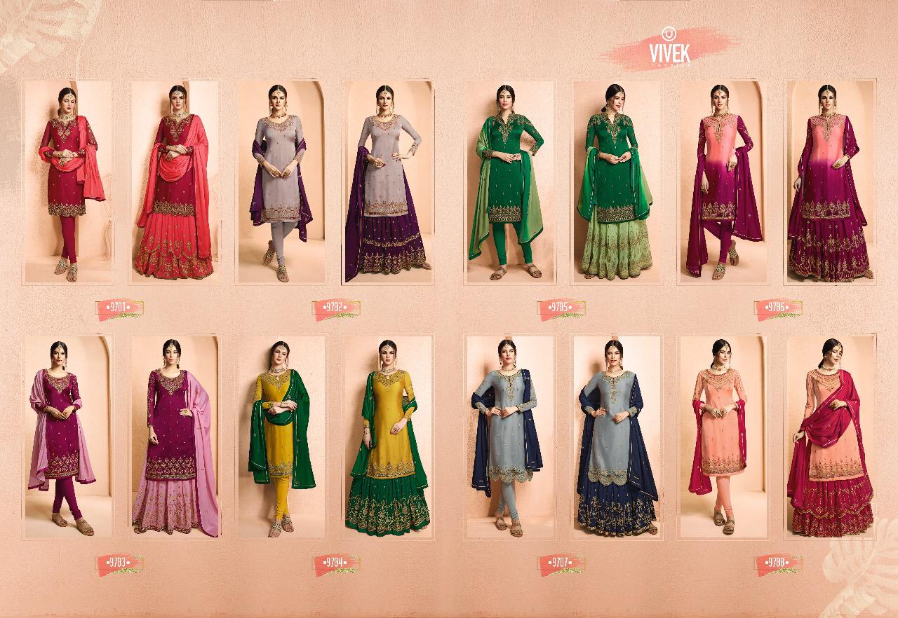Buy Online Ameen 5 Vivek Fashion Series 9701 To 9708 Designer Party Wear Suits Wholesale Supplier Gujarat 8 Pcs of Full Catalogue at Wholesale Price. Looking for Ameen 5 Vivek Fashion Series 9701 To 9708 Designer Party Wear Suits Wholesale Supplier Gujarat Full Catalouge at Best Price? Buy Now Ameen 5 Vivek Fashion Series 9701 To 9708 Designer Party Wear Suits Wholesale Supplier Gujarat at Wholesale Rate of Rs 18360 with Total 8 Pcs from authroized dealer and supplier of Brand. Cost of Each piece is just only Rs 2295 which is very low and affordable price to resale the product in your retail store ,This is Surat based Wholesale Supplier & Dealer of Brand. Click on Brand name to Know more about Brand's products.Call or Whatsapp on 9898838984 for booking or enquiry
