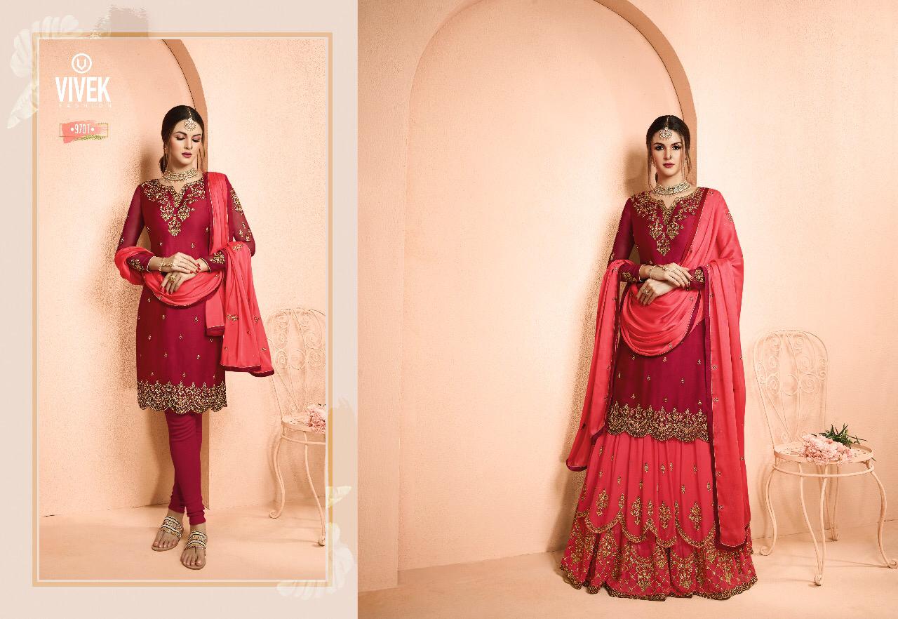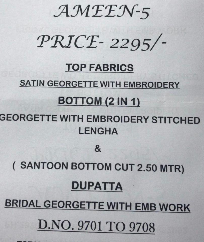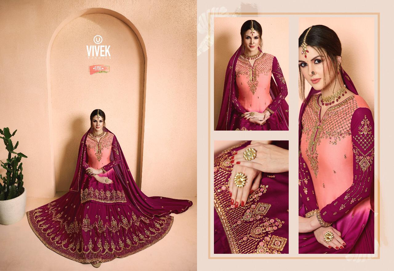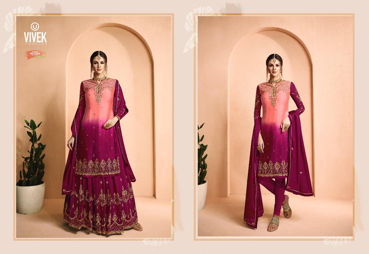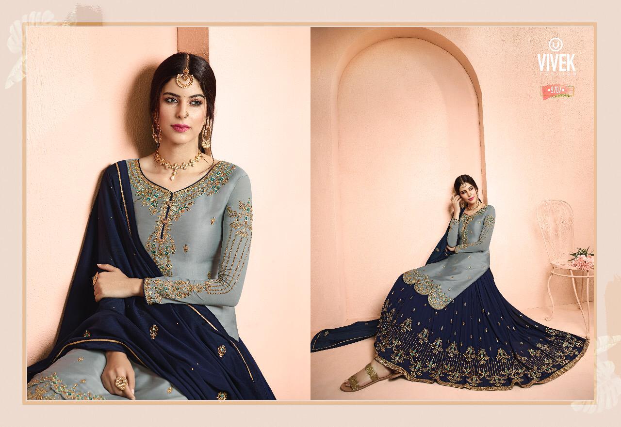 Buy Online Ameen 5 Vivek Fashion Series 9701 To 9708 Designer Party Wear Suits Wholesale Supplier Gujarat 8 Pcs of Full Catalogue at Wholesale Price. Looking for Ameen 5 Vivek Fashion Series 9701 To 9708 Designer Party Wear Suits Wholesale Supplier Gujarat Full Catalouge at Best Price? Buy Now Ameen 5 Vivek Fashion Series 9701 To 9708 Designer Party Wear Suits Wholesale Supplier Gujarat at Wholesale Rate of Rs 18360 with Total 8 Pcs from authroized dealer and supplier of Brand. Cost of Each piece is just only Rs 2295 which is very low and affordable price to resale the product in your retail store ,This is Surat based Wholesale Supplier & Dealer of Brand. Click on Brand name to Know more about Brand's products.Call or Whatsapp on 9898838984 for booking or enquiry