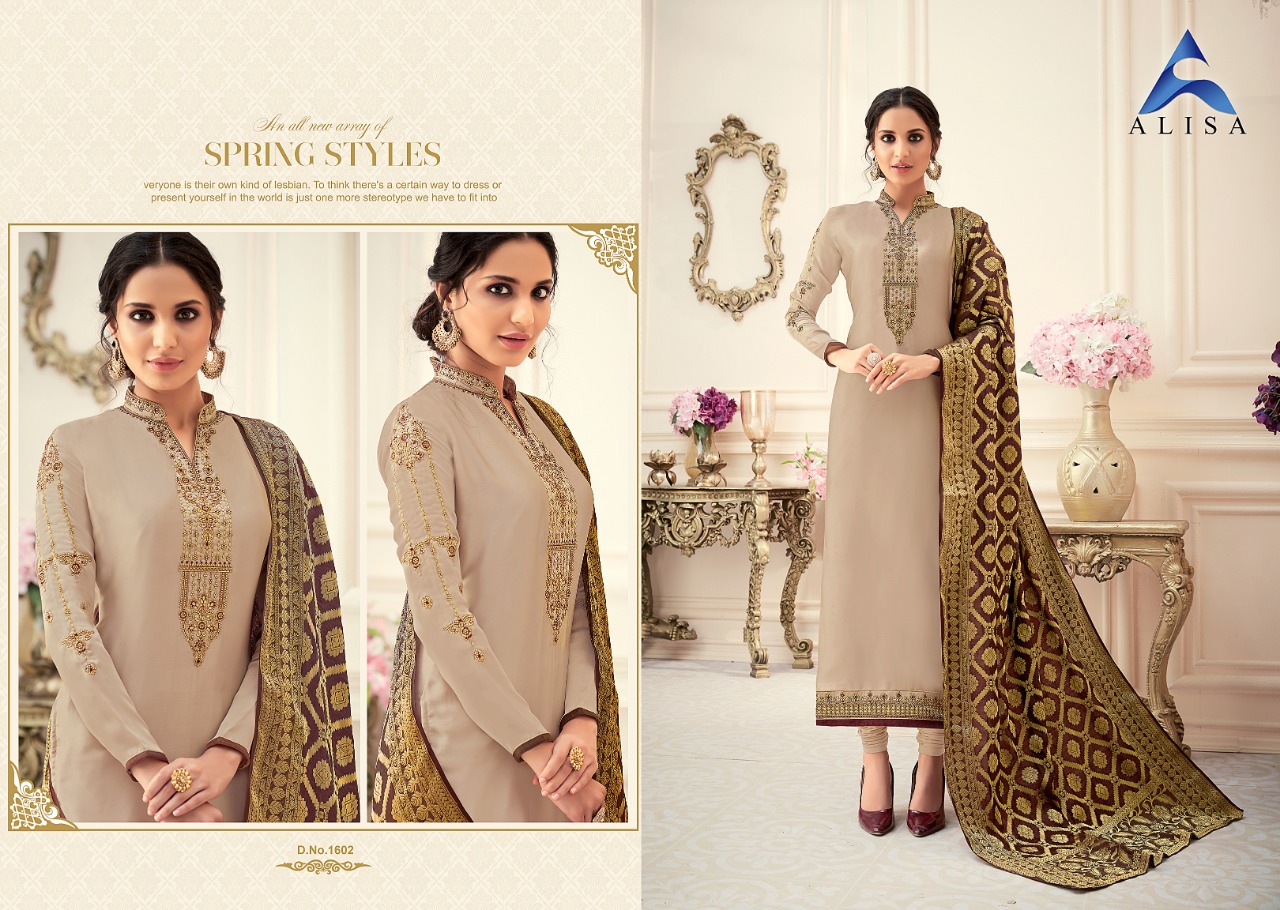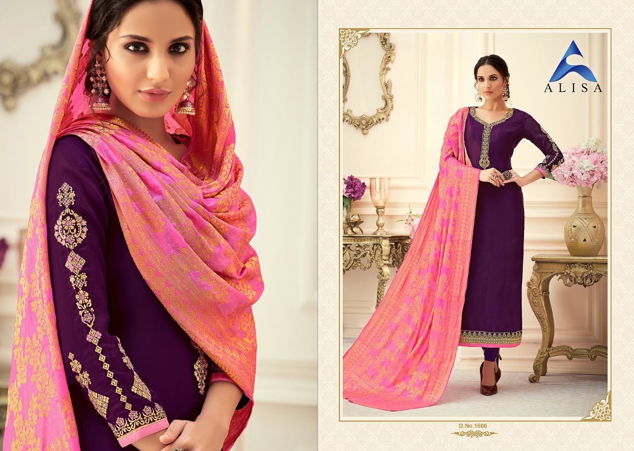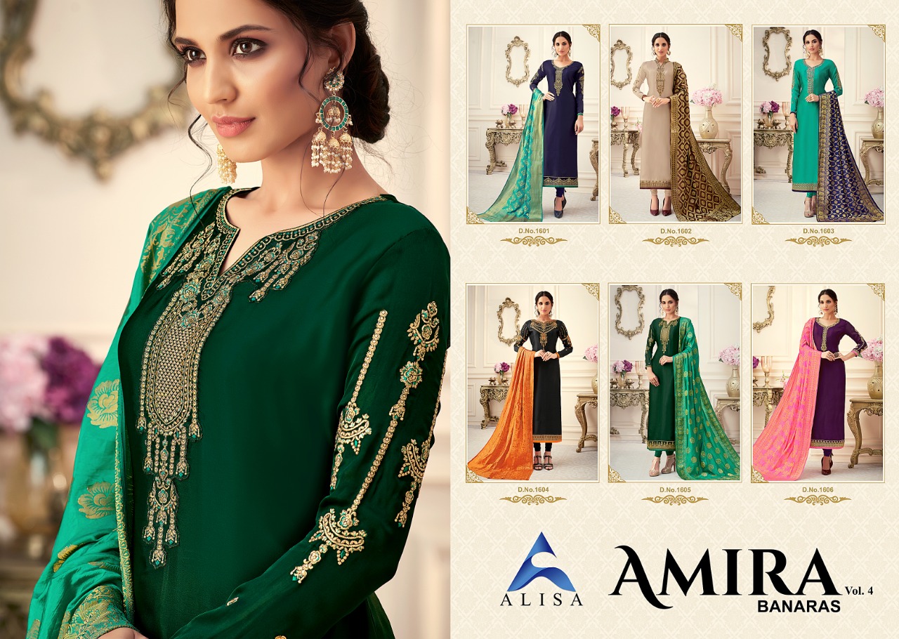 Buy Online Amira Banaras Vol 4 By Alisa Series 1601 To 1606 Georgette Embroidered Designer Party Wear Suits Wholesale Supplier Surat 6 Pcs of Full Catalogue at Wholesale Price. Looking for Amira Banaras Vol 4 By Alisa Series 1601 To 1606 Georgette Embroidered Designer Party Wear Suits Wholesale Supplier Surat Full Catalouge at Best Price? Buy Now Amira Banaras Vol 4 By Alisa Series 1601 To 1606 Georgette Embroidered Designer Party Wear Suits Wholesale Supplier Surat at Wholesale Rate of Rs 7170 with Total 6 Pcs from authroized dealer and supplier of Brand. Cost of Each piece is just only Rs 1195 which is very low and affordable price to resale the product in your retail store ,This is Surat based Wholesale Supplier & Dealer of Brand. Click on Brand name to Know more about Brand's products.Call or Whatsapp on 9898838984 for booking or enquiry