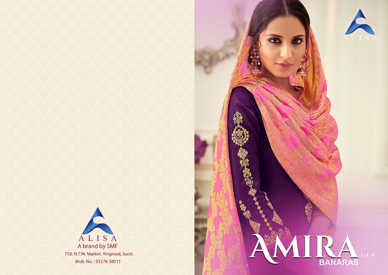Amira Banaras Vol 4 By Alisa Series 1601 To 1606 Georgette Embroidered Designer Party Wear Suits Wholesale Supplier Surat