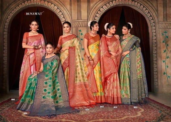 ? *New Catalog Exclusively Launching From Our Newly Launched Brand:- BUNAWAT* ? Catalog Name: *Amisha Kota* Brand: *BUNAWAT* Product Type: Saree Fabric: Organza Price Per Piece: 1315/- Gst Extra: 5% Work: Woven Work Other Specifications: Tassels on Pallu Saree Mtr: 5.5 Mtr Blouse: 0.8 Mtr Total Pcs: 6 _*Book your orders now*_ 100+single |