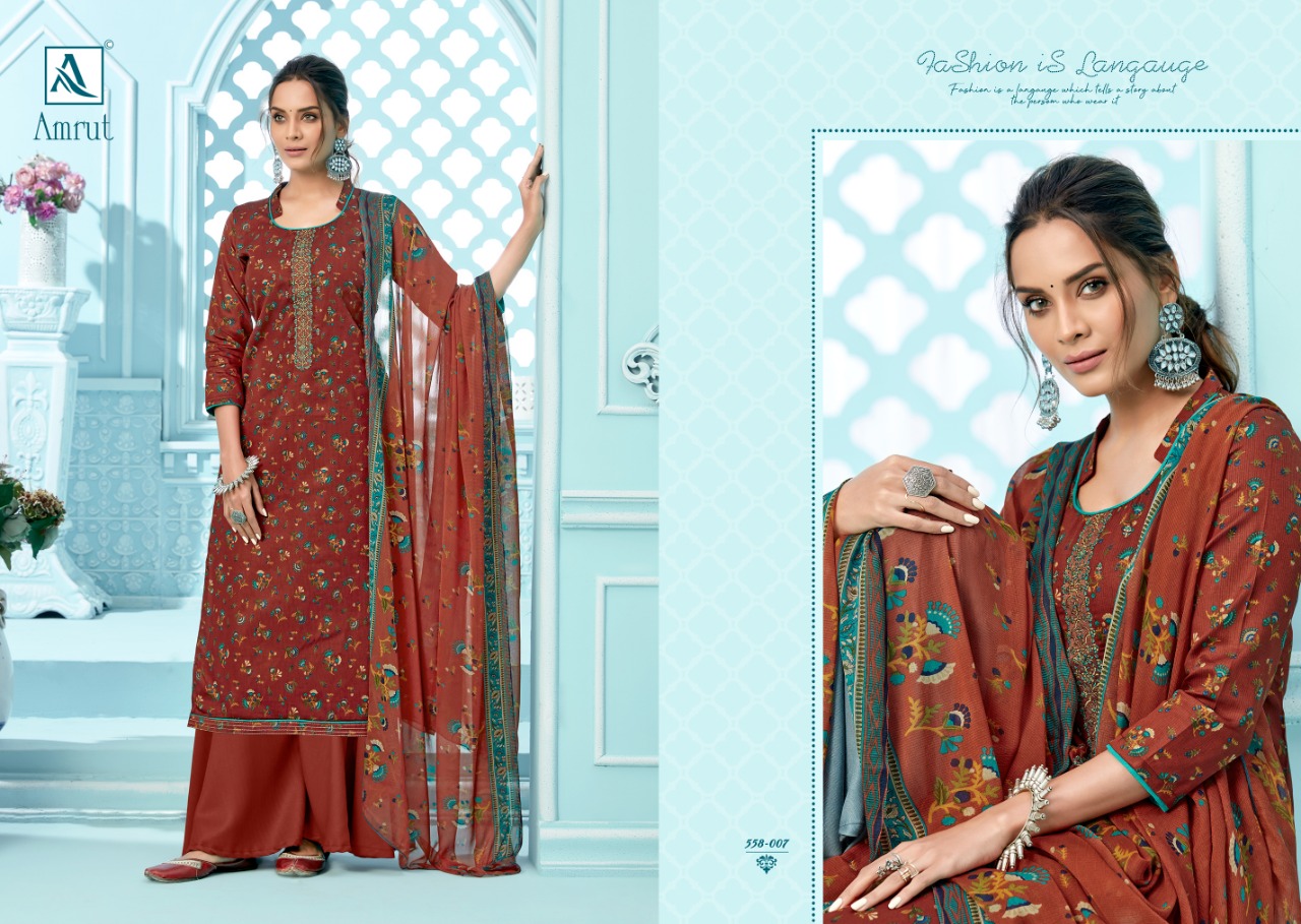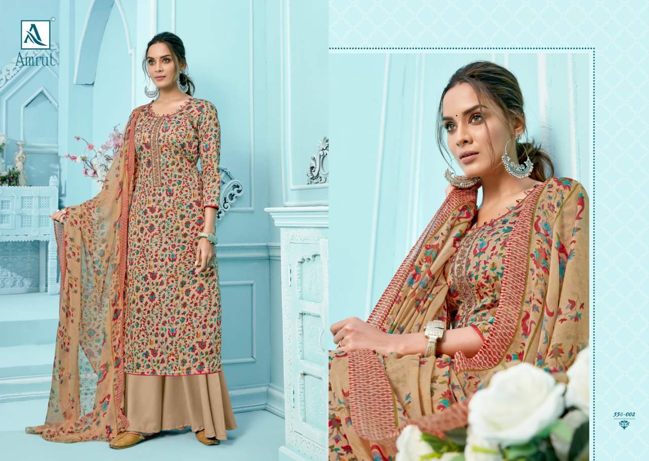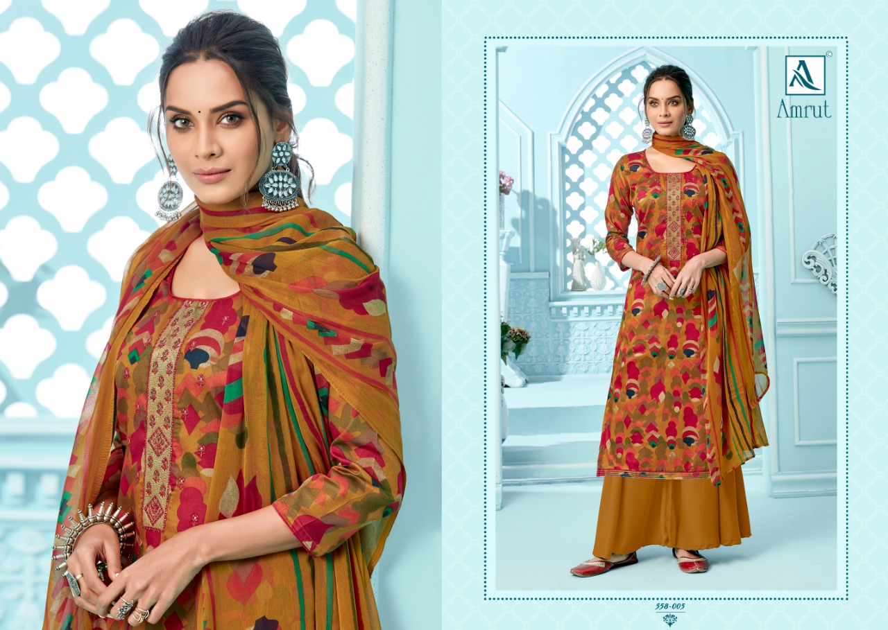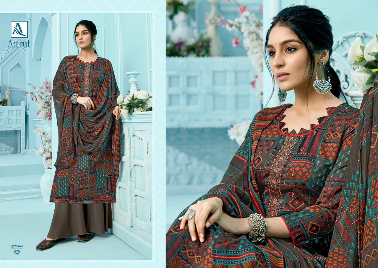 Buy Online Amrut By Alok Suit Wholesale Suppliers And Dealer From India 10 Pcs of Full Catalogue at Wholesale Price. Looking for Amrut By Alok Suit Wholesale Suppliers And Dealer From India Full Catalouge at Best Price? Buy Now Amrut By Alok Suit Wholesale Suppliers And Dealer From India at Wholesale Rate of Rs 5500 with Total 10 Pcs from authroized dealer and supplier of Brand. Cost of Each piece is just only Rs 550 which is very low and affordable price to resale the product in your retail store ,This is Surat based Wholesale Supplier & Dealer of Brand. Click on Brand name to Know more about Brand's products.Call or Whatsapp on 9898838984 for booking or enquiry