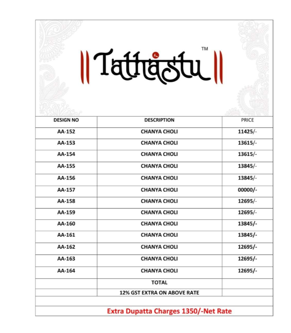 👑 Brand: TATHASTU 📖 Catalog: ANAARA BRIDAL WEAR 💰 Rate: Attached (+12% GST Extra)