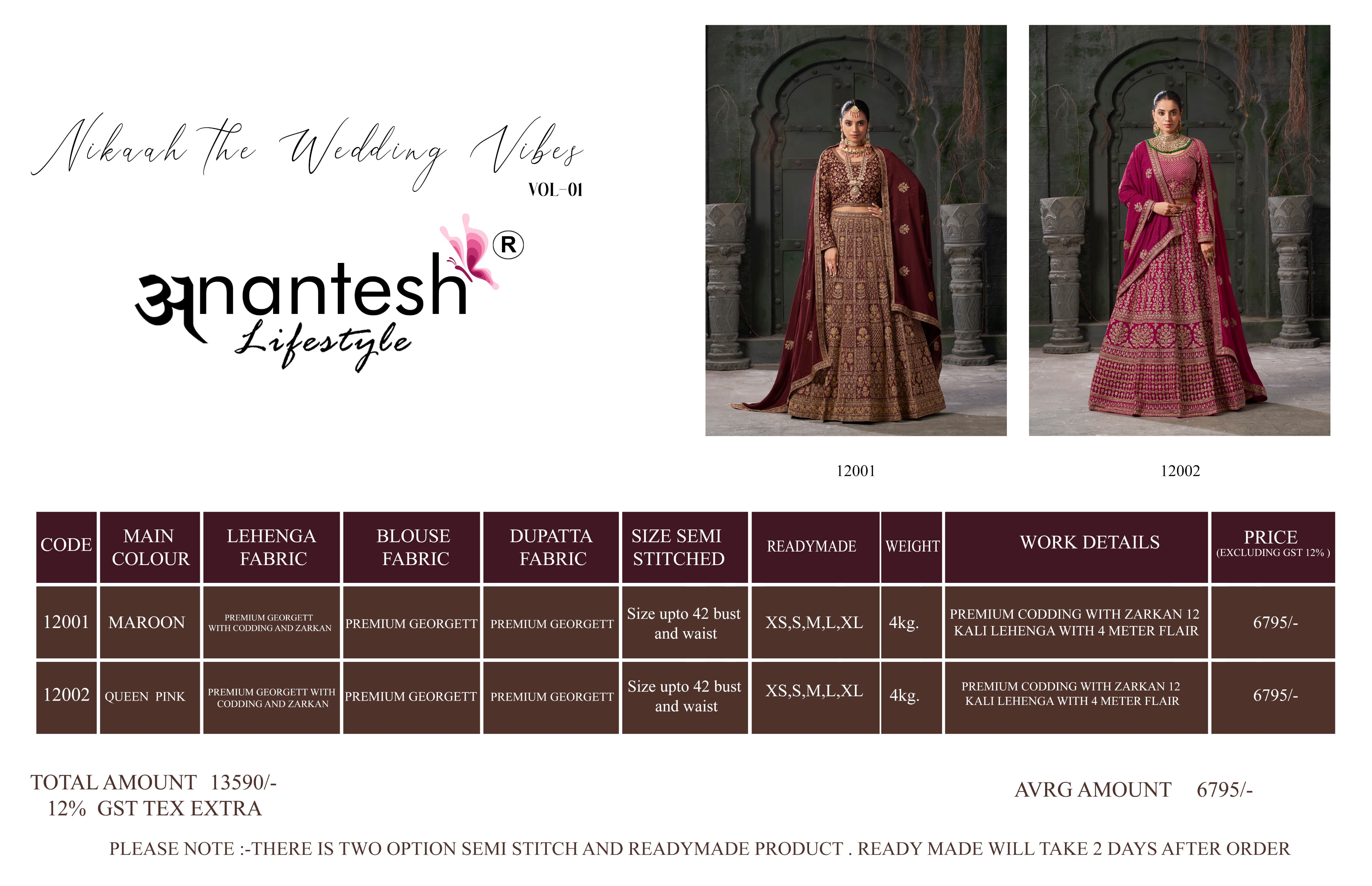 Buy Online Anantesh Lifestyle New Launching Nikaah The Wedding Vibes Vol 1 Heavy Collection Manufacturer Surat 2 Pcs of Full Catalogue at Wholesale Price. Looking for Anantesh Lifestyle New Launching Nikaah The Wedding Vibes Vol 1 Heavy Collection Manufacturer Surat Full Catalouge at Best Price? Buy Now Anantesh Lifestyle New Launching Nikaah The Wedding Vibes Vol 1 Heavy Collection Manufacturer Surat at Wholesale Rate of Rs 13590 with Total 2 Pcs from authroized dealer and supplier of Brand. Cost of Each piece is just only Rs 6795 which is very low and affordable price to resale the product in your retail store ,This is Surat based Wholesale Supplier & Dealer of Brand. Click on Brand name to Know more about Brand's products.Call or Whatsapp on 9898838984 for booking or enquiry