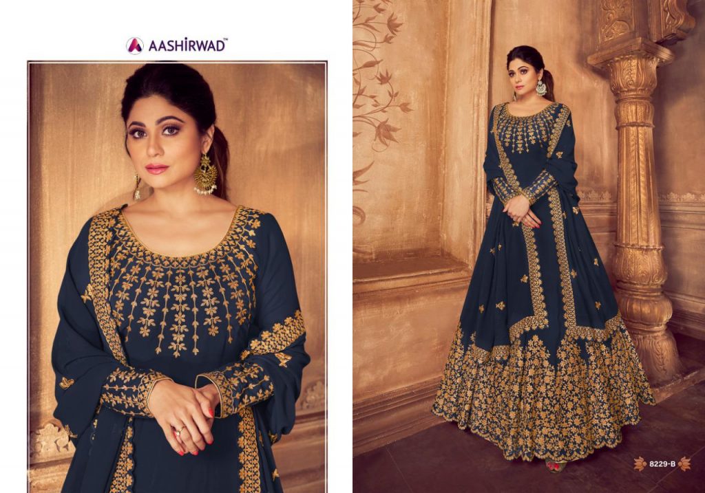 Buy Online Anarkali Gold By Ashirwad Series 8229a Designer Party Wear Suits Wholesale Supplier Nd Dealer Gujarat 5 Pcs of Full Catalogue at Wholesale Price. Looking for Anarkali Gold By Ashirwad Series 8229a Designer Party Wear Suits Wholesale Supplier Nd Dealer Gujarat Full Catalouge at Best Price? Buy Now Anarkali Gold By Ashirwad Series 8229a Designer Party Wear Suits Wholesale Supplier Nd Dealer Gujarat at Wholesale Rate of Rs 11475 with Total 5 Pcs from authroized dealer and supplier of AASHIRWAD Brand. Cost of Each piece is just only Rs 2295 which is very low and affordable price to resale the product in your retail store ,This is Surat based Wholesale Supplier & Dealer of AASHIRWAD Brand. Click on Brand name to Know more about AASHIRWAD Brand's products.Call or Whatsapp on 9898838984 for booking or enquiry