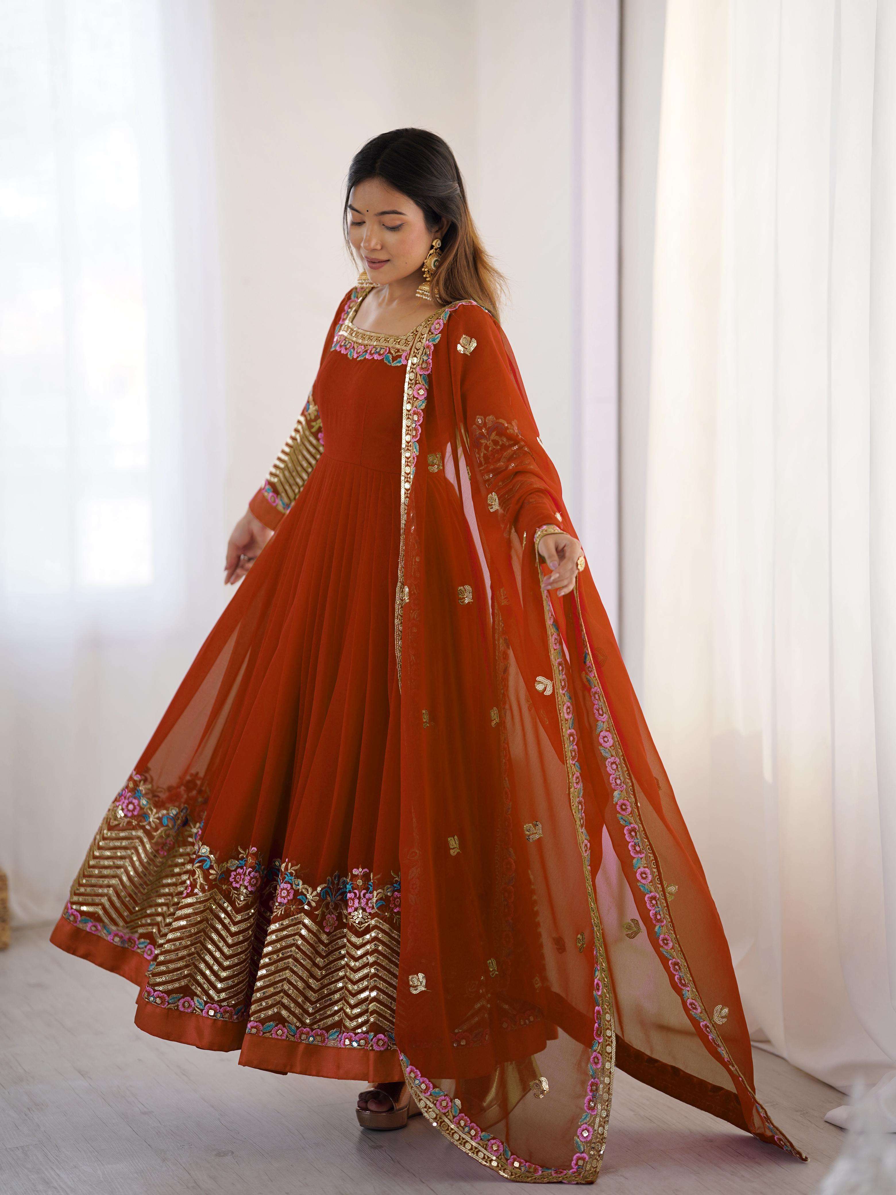 📦 *Package Contain :-* Gown, Bottom & Dupatta 🎨 *Colours :-* 2 Colours ⚖️ *Weight :-* Up to 1 Kg 🧵 *Stitching :-* Fully Stitched & Ready To Wear