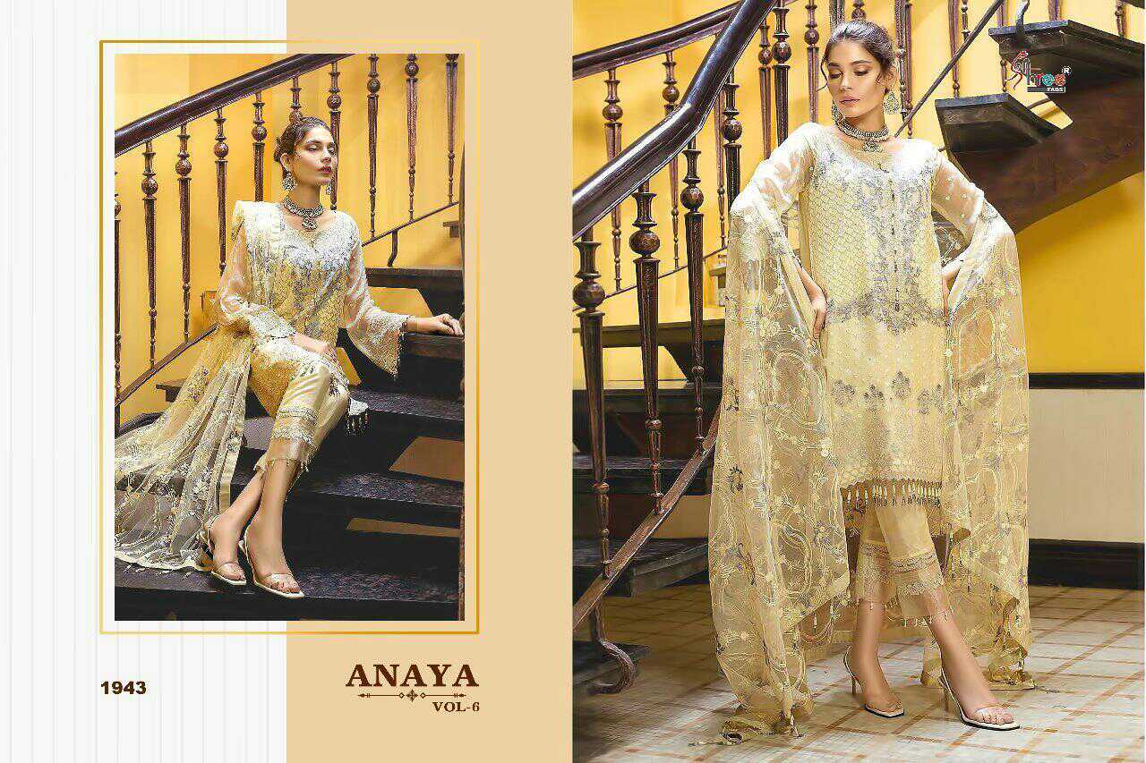 Buy Online Anaya Vol 6 By Shree Fabs Georgette Embroidered Designer Pakistani Suits Wholesale Supplier Surat 5 Pcs of Full Catalogue at Wholesale Price. Looking for Anaya Vol 6 By Shree Fabs Georgette Embroidered Designer Pakistani Suits Wholesale Supplier Surat Full Catalouge at Best Price? Buy Now Anaya Vol 6 By Shree Fabs Georgette Embroidered Designer Pakistani Suits Wholesale Supplier Surat at Wholesale Rate of Rs 5995 with Total 5 Pcs from authroized dealer and supplier of SHREE FABS Brand. Cost of Each piece is just only Rs 1199 which is very low and affordable price to resale the product in your retail store ,This is Surat based Wholesale Supplier & Dealer of SHREE FABS Brand. Click on Brand name to Know more about SHREE FABS Brand's products.Call or Whatsapp on 9898838984 for booking or enquiry