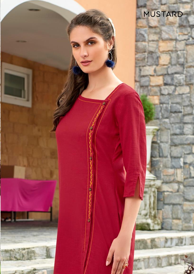 Angrakha By Mustard Cotton Embroidered Kurtis Catalog Wholesale Supplier And Dealer Surat