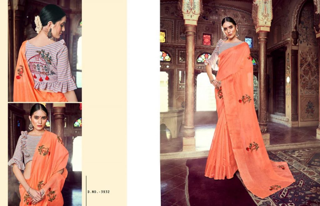 Brand - Kessi . Type - saree. Catlog name - ANOKHI. Series -3931 to 3940. Rate - 999 per Pcs . GST 5 Percent Extra. Delivery 2 days |