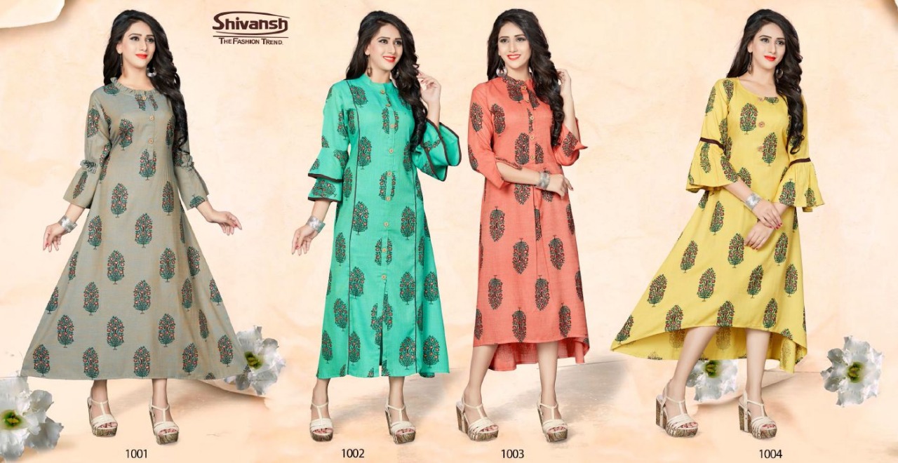 Buy Online Anushka By Shivansh 1001 Series Fancy Printed Reyon Slub Kurti Catlog Wholesale Dealer And Supplier Surat 4 Pcs of Full Catalogue at Wholesale Price. Looking for Anushka By Shivansh 1001 Series Fancy Printed Reyon Slub Kurti Catlog Wholesale Dealer And Supplier Surat Full Catalouge at Best Price? Buy Now Anushka By Shivansh 1001 Series Fancy Printed Reyon Slub Kurti Catlog Wholesale Dealer And Supplier Surat at Wholesale Rate of Rs 2320 with Total 4 Pcs from authroized dealer and supplier of Brand. Cost of Each piece is just only Rs 580 which is very low and affordable price to resale the product in your retail store ,This is Surat based Wholesale Supplier & Dealer of Brand. Click on Brand name to Know more about Brand's products.Call or Whatsapp on 9898838984 for booking or enquiry