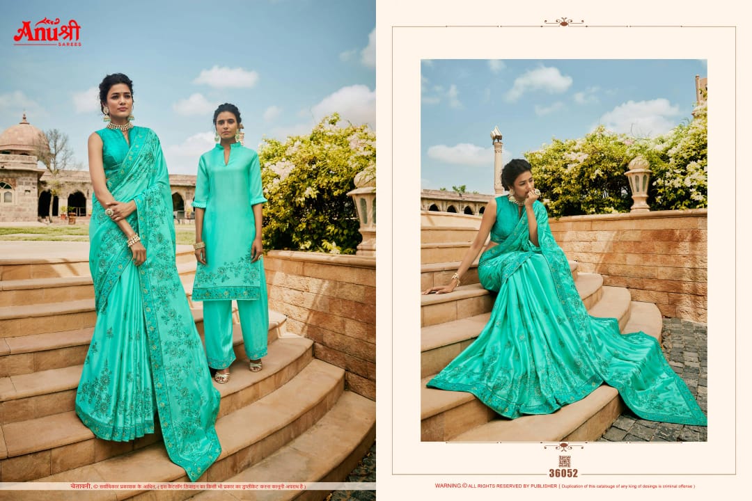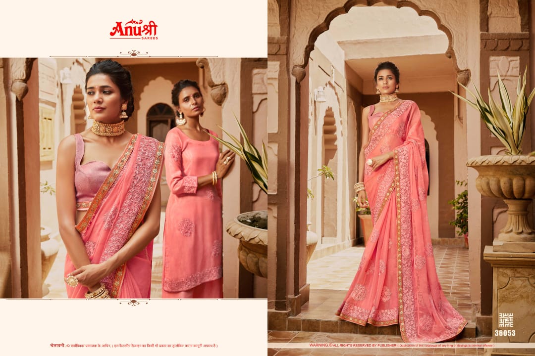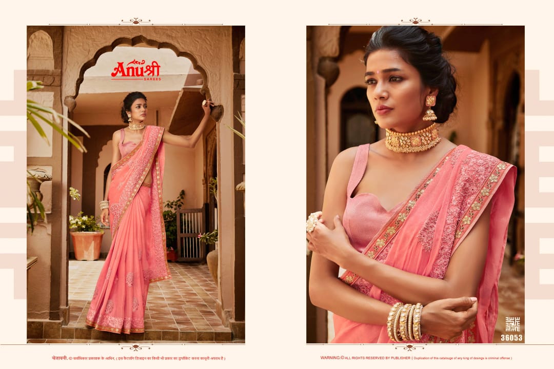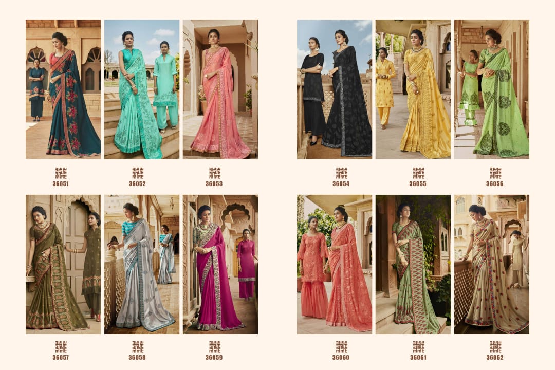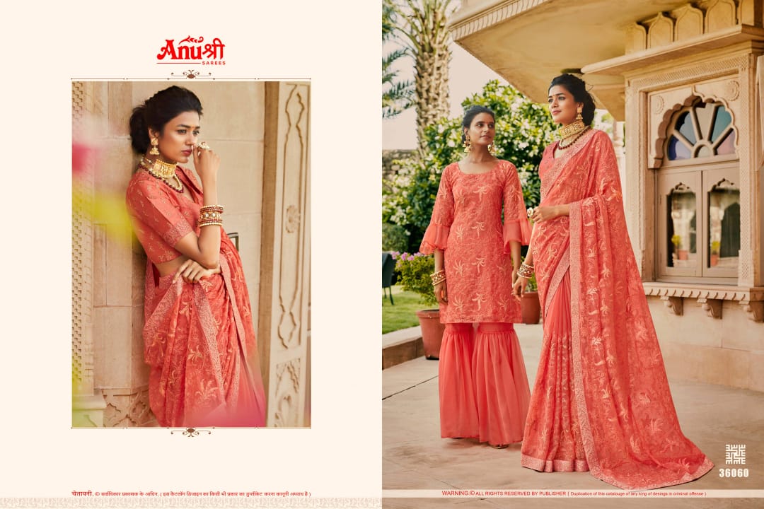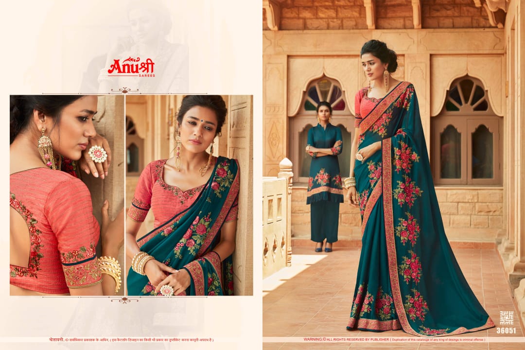 Anushree Series 36051 To 36062 Designer Party Wear Sarees Wholesale Supplier And Dealer India