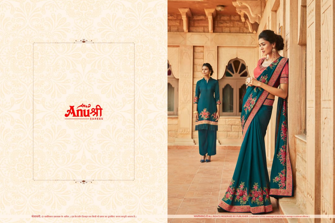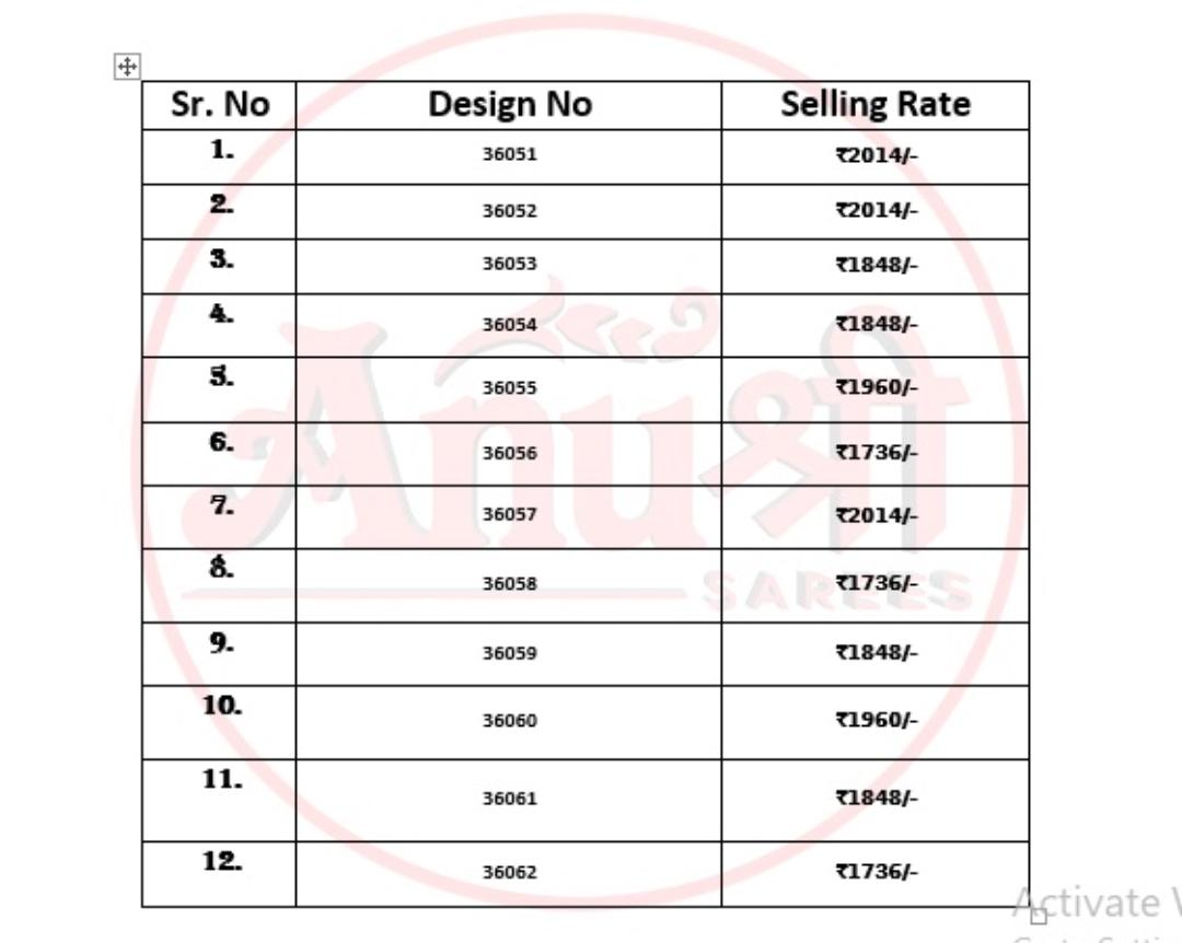 Anushree sarees Single and multiple available 5% GST shipping extra Single Extra 100 on company price list Rate list attached |