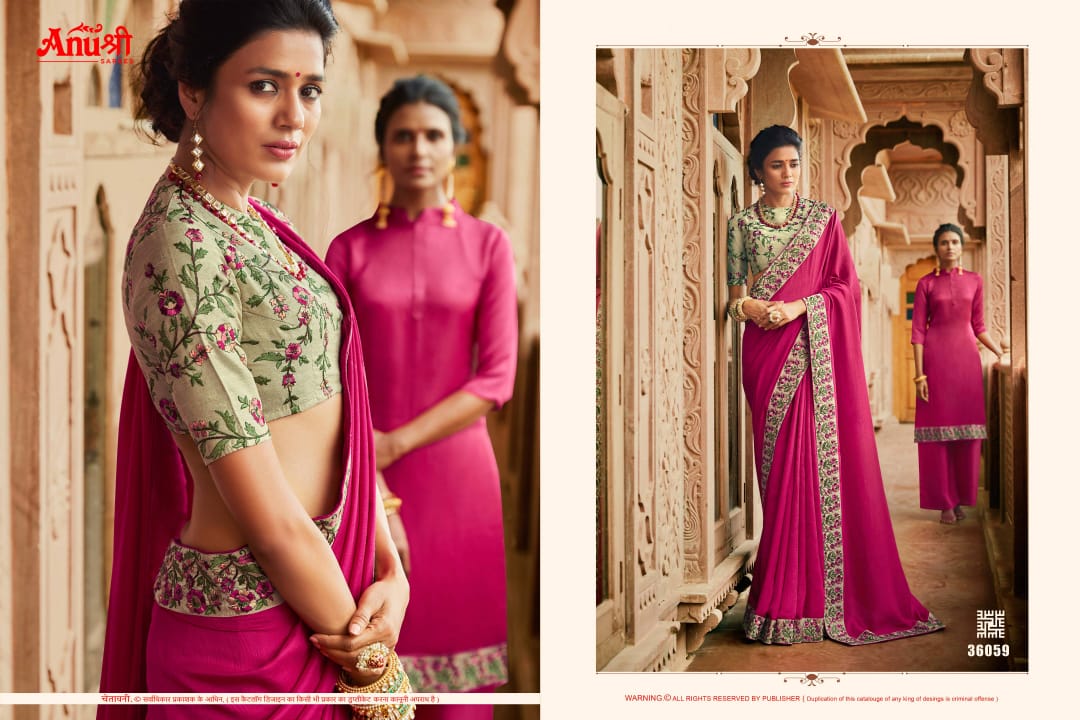 Buy Online Anushree Series 36051 To 36062 Designer Party Wear Sarees Wholesale Supplier And Dealer India 12 Pcs of Full Catalogue at Wholesale Price. Looking for Anushree Series 36051 To 36062 Designer Party Wear Sarees Wholesale Supplier And Dealer India Full Catalouge at Best Price? Buy Now Anushree Series 36051 To 36062 Designer Party Wear Sarees Wholesale Supplier And Dealer India at Wholesale Rate of Rs 0 with Total 12 Pcs from authroized dealer and supplier of BRAND'S Brand. Cost of Each piece is just only Rs 0 which is very low and affordable price to resale the product in your retail store ,This is Surat based Wholesale Supplier & Dealer of BRAND'S Brand. Click on Brand name to Know more about BRAND'S Brand's products.Call or Whatsapp on 9898838984 for booking or enquiry