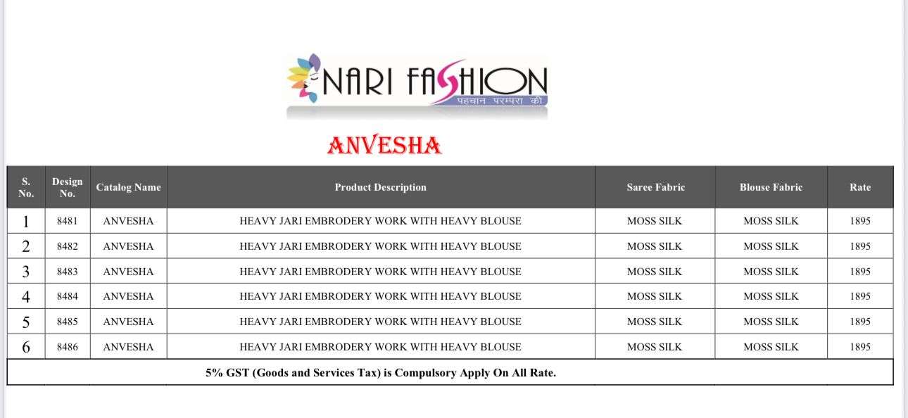 NARI FASHION ANVESHA 1895+5%+SHIP
