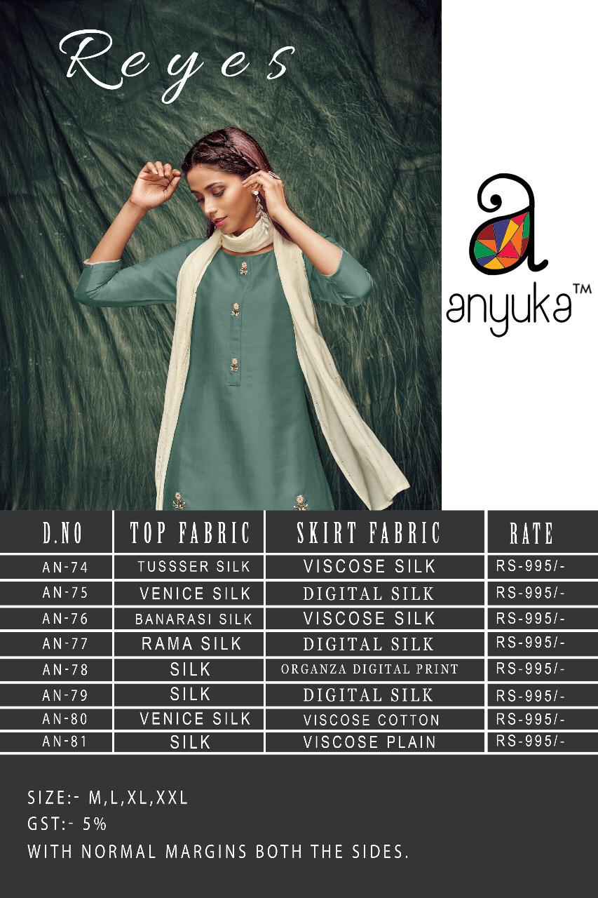 Buy Online Anyuka An 74 To An 81 Designer Suits Wholesale Supplier Gujarat 8 Pcs of Full Catalogue at Wholesale Price. Looking for Anyuka An 74 To An 81 Designer Suits Wholesale Supplier Gujarat Full Catalouge at Best Price? Buy Now Anyuka An 74 To An 81 Designer Suits Wholesale Supplier Gujarat at Wholesale Rate of Rs 7960 with Total 8 Pcs from authroized dealer and supplier of Brand. Cost of Each piece is just only Rs 995 which is very low and affordable price to resale the product in your retail store ,This is Surat based Wholesale Supplier & Dealer of Brand. Click on Brand name to Know more about Brand's products.Call or Whatsapp on 9898838984 for booking or enquiry