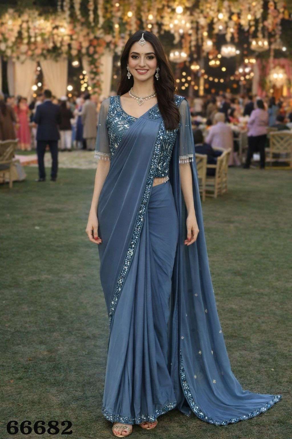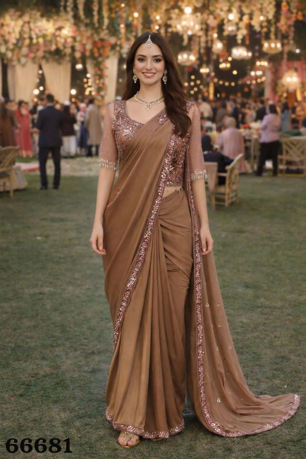 FABRIC - REAL PREMIUM LYCRA ( READY TO WEAR SAREE WITH FULL BLOUSE WORK 38 SIZE FULL STICH WITH 4 INCH MARJIN )