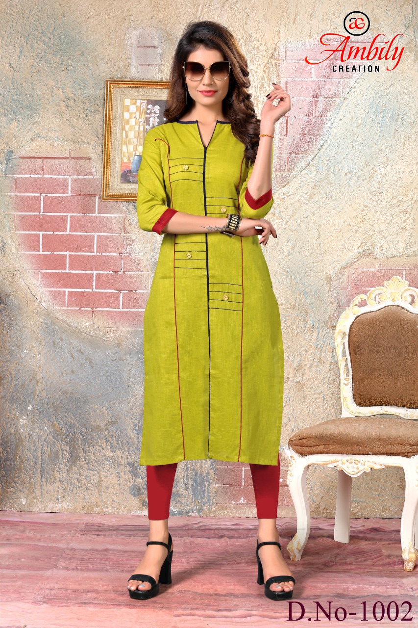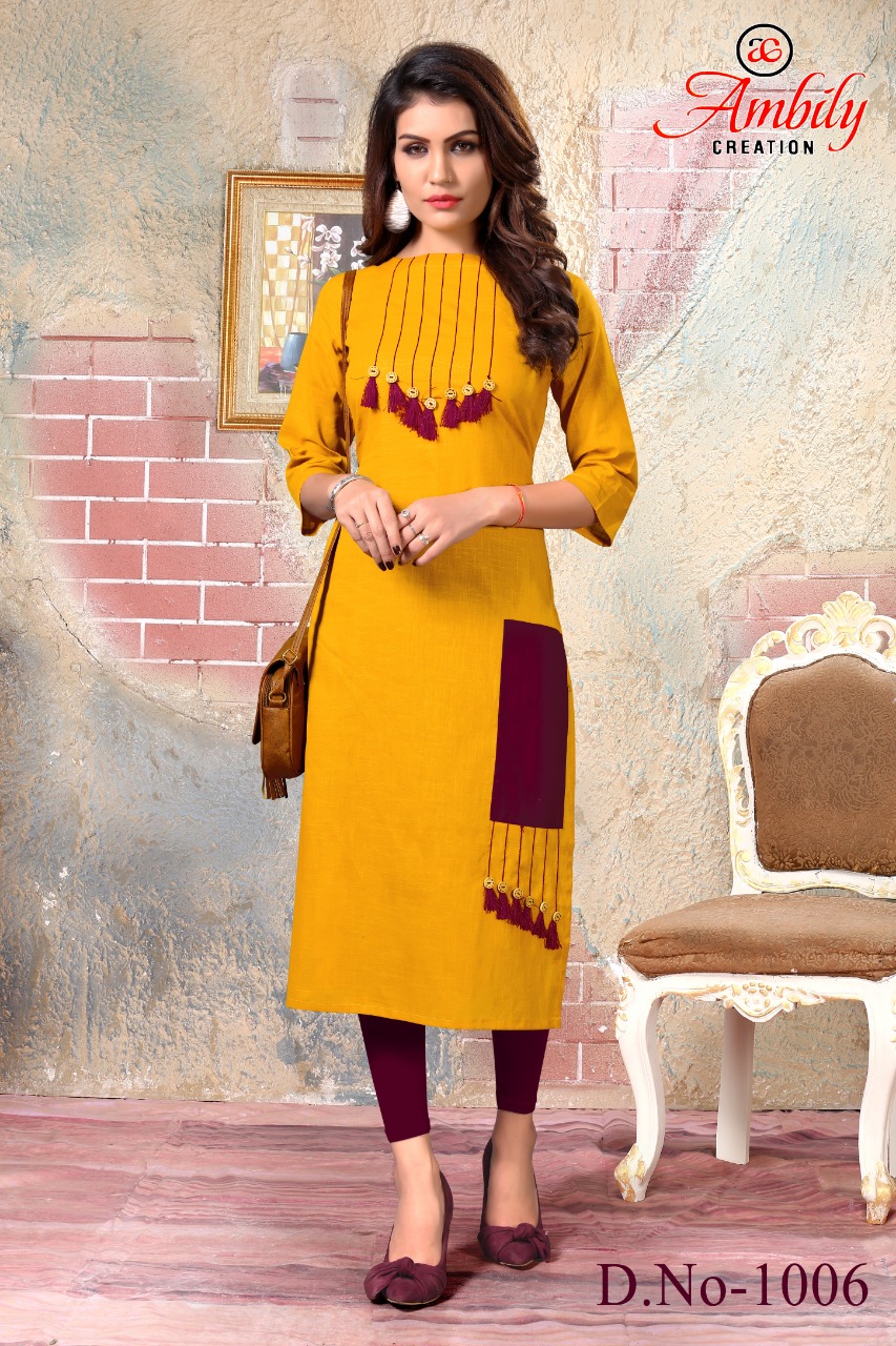 Arohi By Ambily Creation Slub Cotton Kurtis Collecotion Wholesale Supplier And Dealer Surat