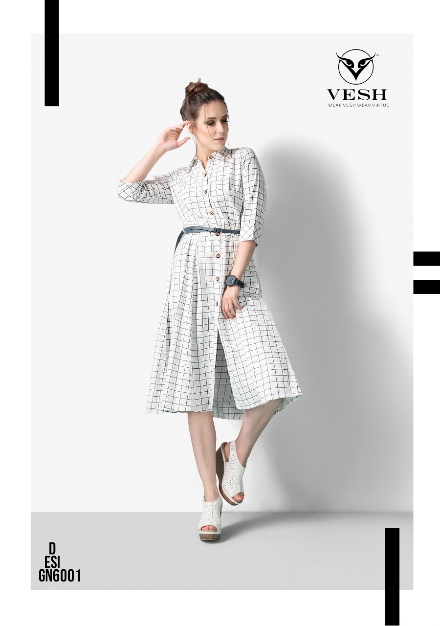 _VESH KURTIS_ *Catalog Name: ARRAY* *Incudes*: Top Only *Type:* Long Flared Fit with Waist Belt *Pack of :* 8 Varied Designs *Fabric:* Cotton Print *Pattern:* Printed Fabric *Length:* 48" *Rate:* 936/- Available Sizes: _*Top*_ *L*/40, *XL*/42, *2XL*/44 |